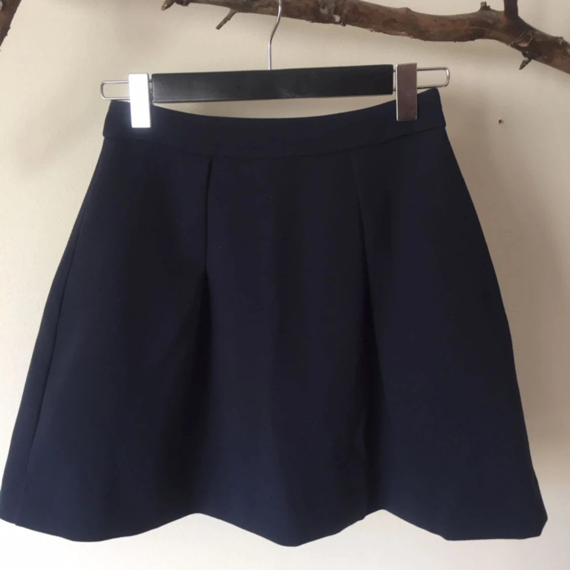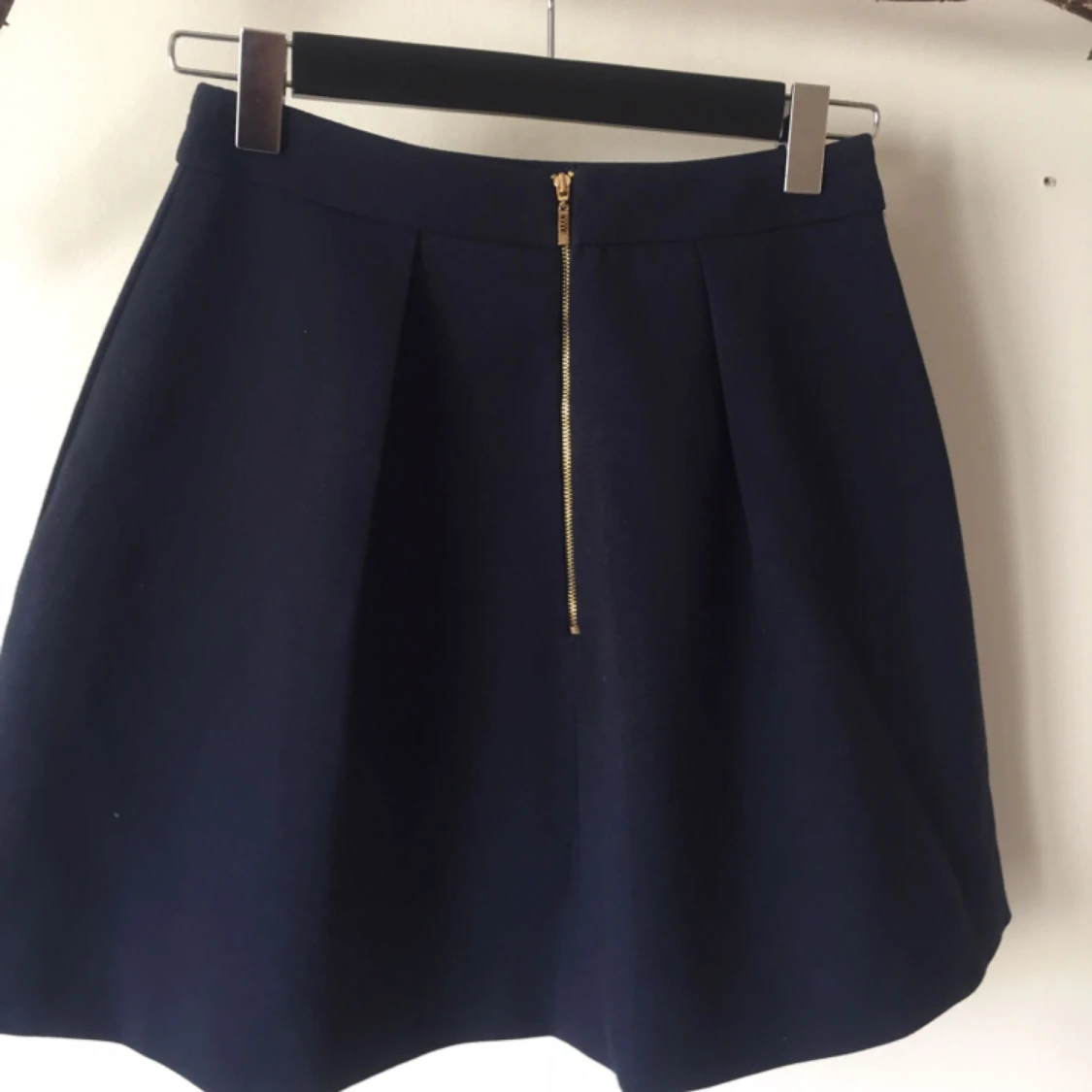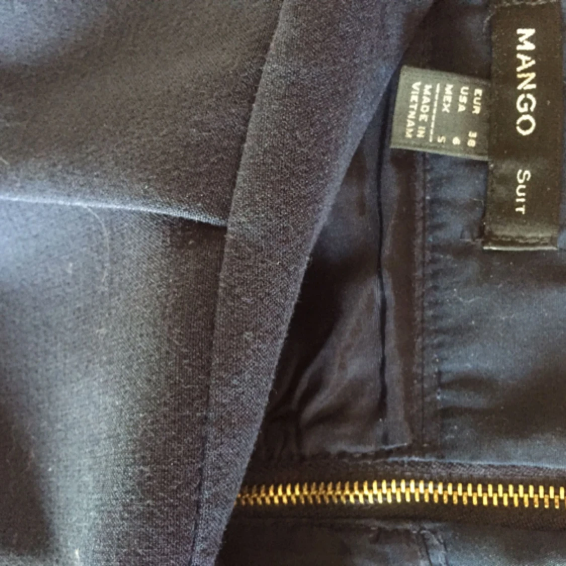 Mörkblå vippig kjol från mango suit. Använd 1 gång så i mycket gott skick. Snygg detalj med guldig dragkedja bak. Stl XS men passar även S. Garderobsrensning, se mina övriga annonser. Köparen står för frakt. Ansvarar ej för postens ev slarv.
