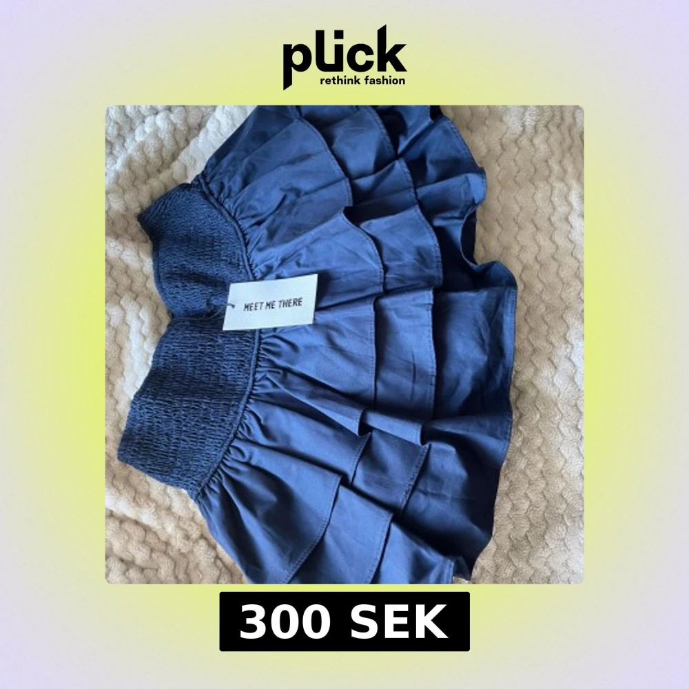 Supersöt marinblå kortkjol från Meet Me There med bred smock i midjan och flera lager volanger. Kjolen har innershorts för extra komfort. Perfekt för dig som gillar en elegant och trendig stil. Nypris ca 400kr