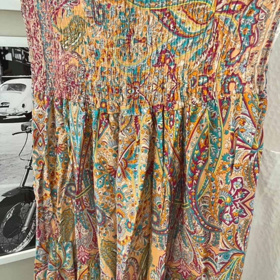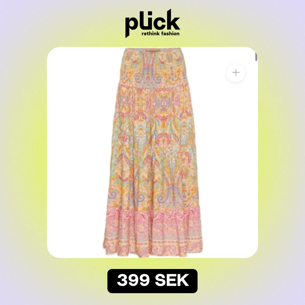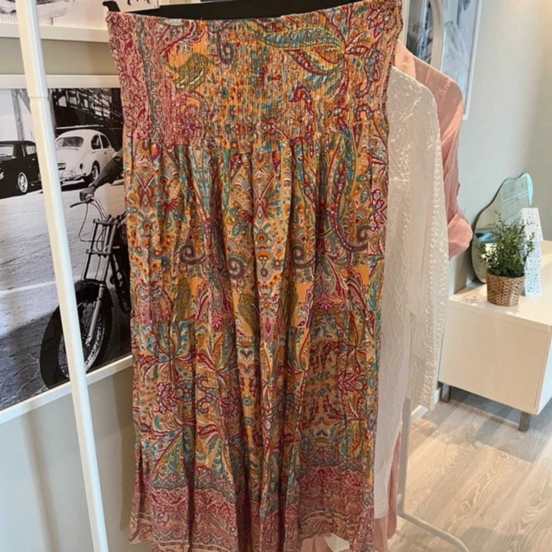 Jättefin långkjol i fint mönster. Tror inte mönstret är 100% samma som första bilden men hittar inte exakt vilket det är🩷 storlek S/M och skicket är fint!