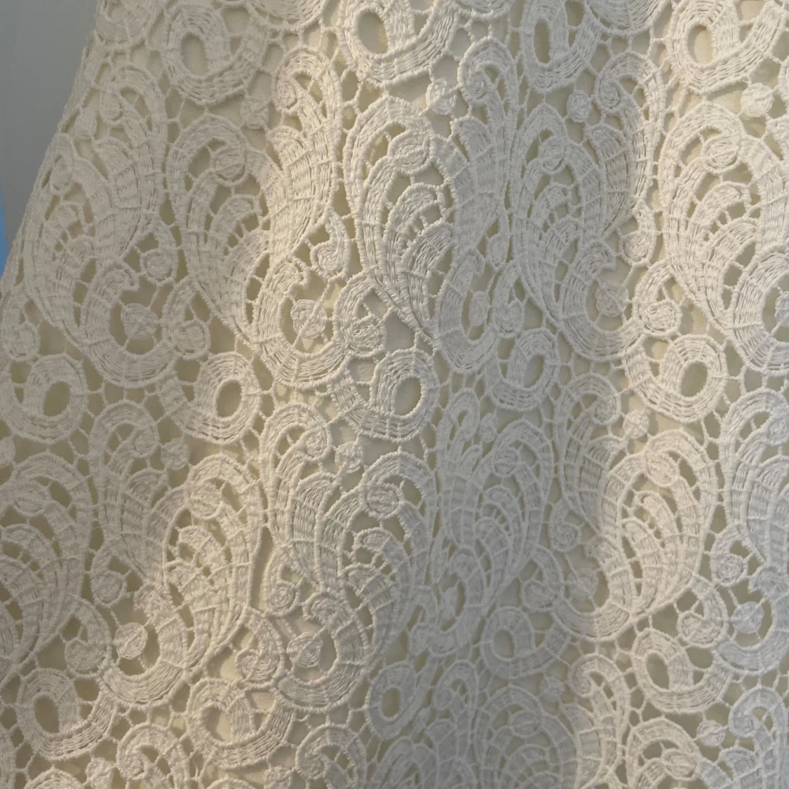 Superfin vit långkjol från Massimo Dutti i storlek 38. Kjolen har ett vackert spetsmönster med snygga detaljer och är fodrad under. Perfekt för dig som gillar en romantisk och elegant stil. Använt endast en gång!