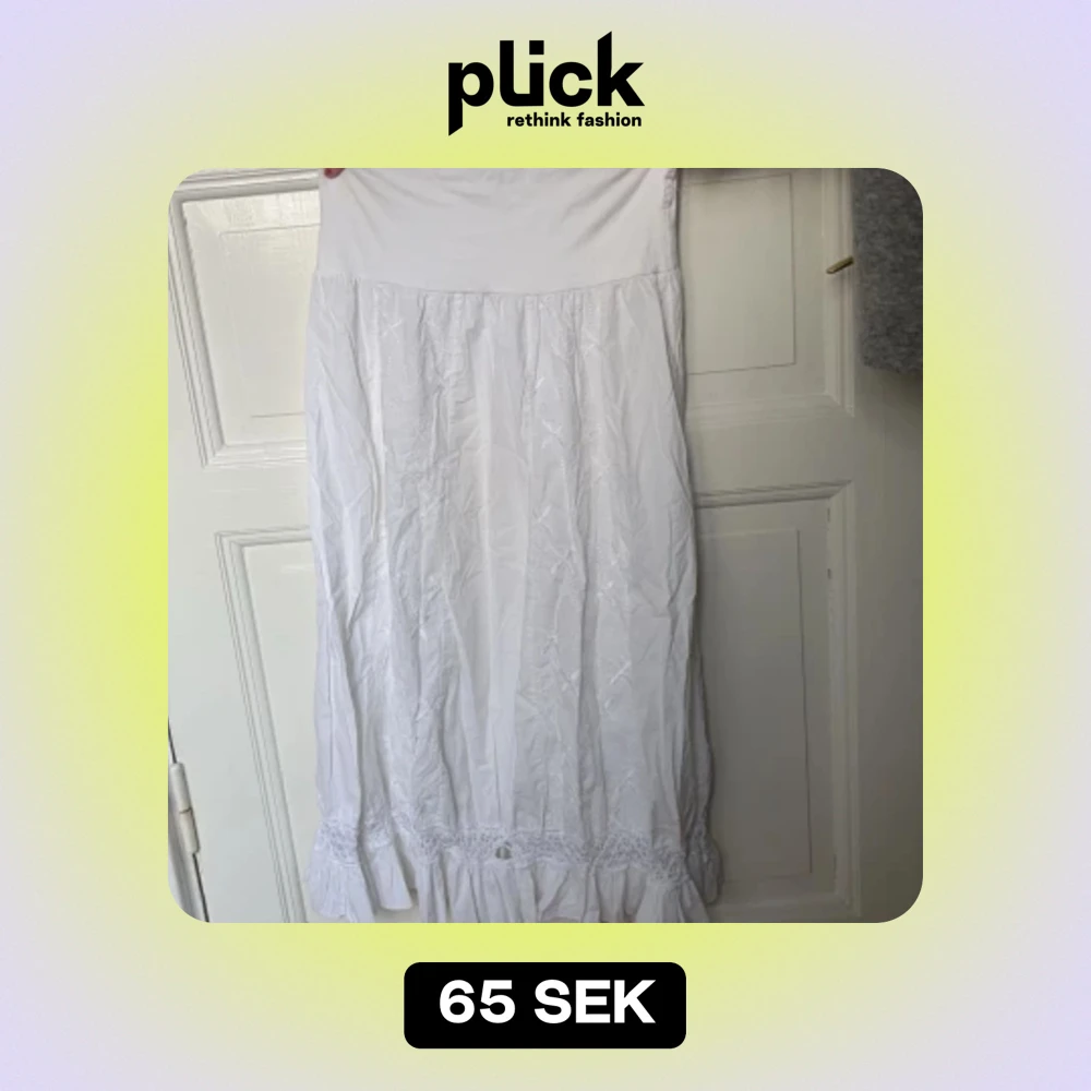 Superfin vit maxikjol med broderier💓stretchig midja! Passar nog XS/S, bra längd för en person under 167 om man vill ha den hellång. Fint skick bortsett från ett litet hål längst ner på baksidan (därav priset), se bild.
