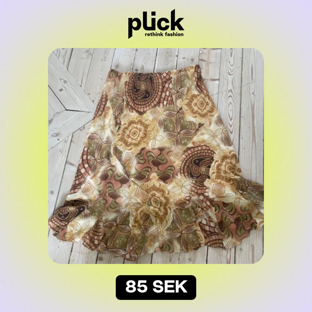 Midi-kjol i fint Print orange gult, passar s-L pga stretchig