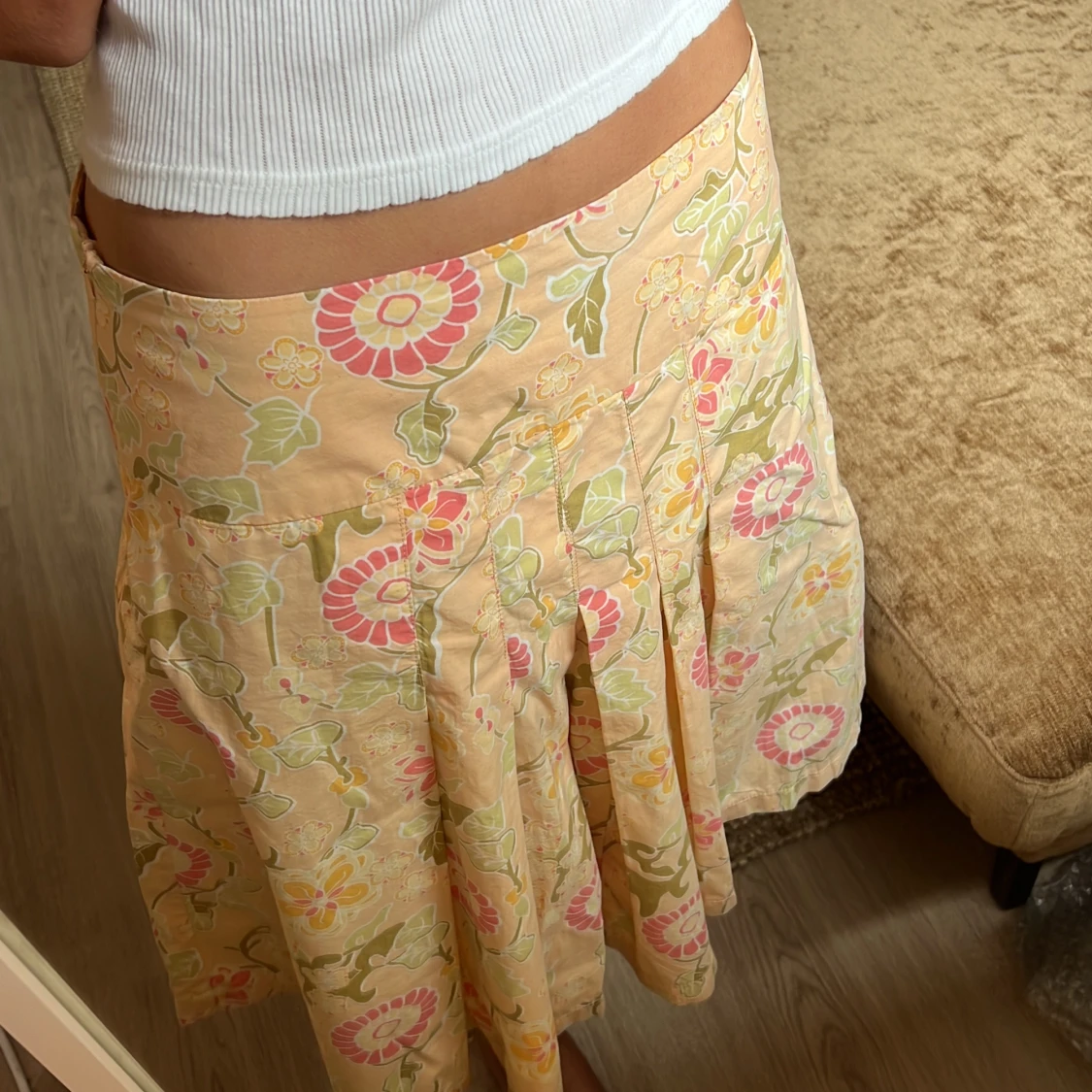 Otroligt söt blommig kjol! Inköpt på 90-talet men i perfekt skick 🧡 Storlek 34 men lite stor i storleken så passar även en 36-38.