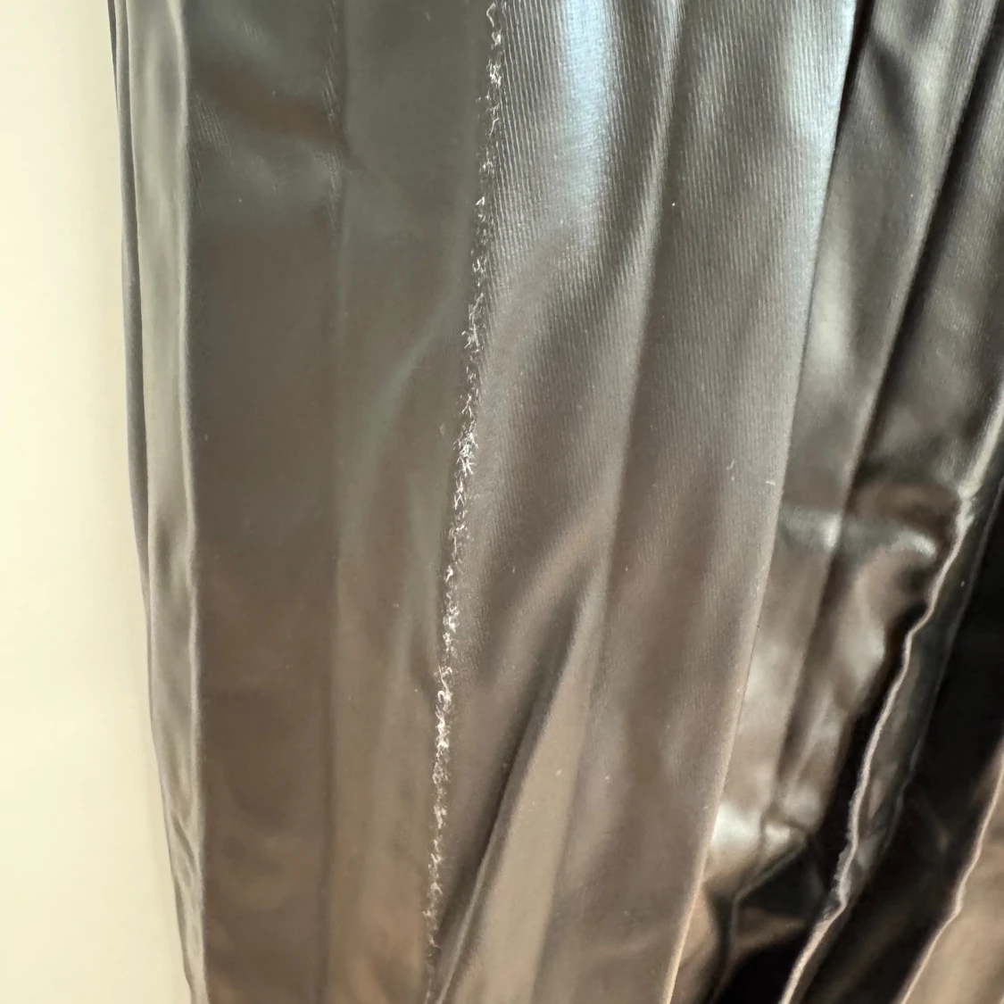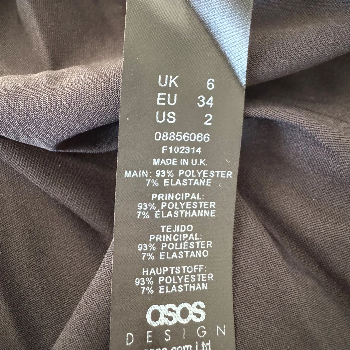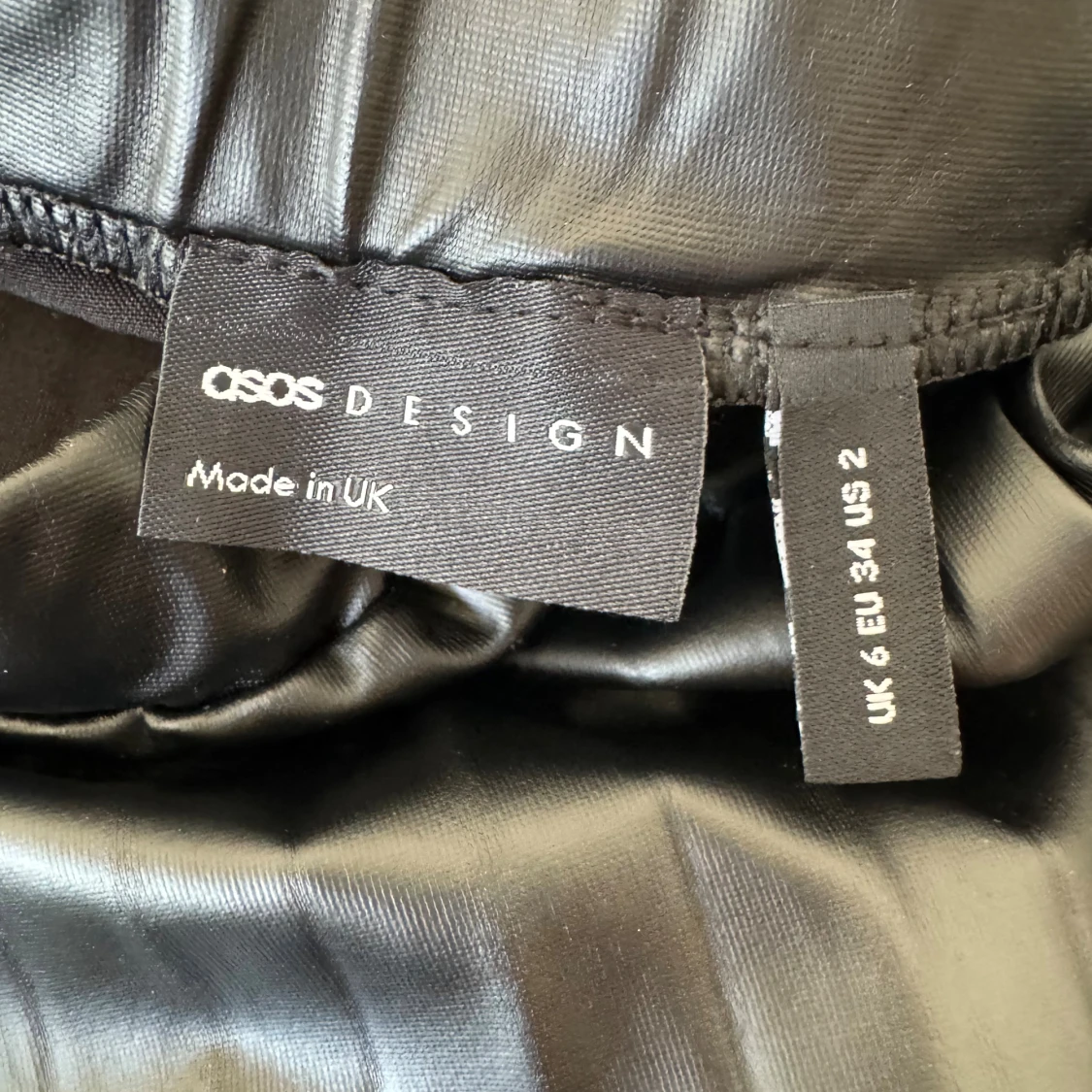 Svart plisserad midikjol från ASOS DESIGN i storlek 34/XS. Kjolen har en elastisk midja och är tillverkad av 93% polyester och 7% elastan. Har aldrig använts, men har ett märke på högra sidan som fanns redan vid leverans.