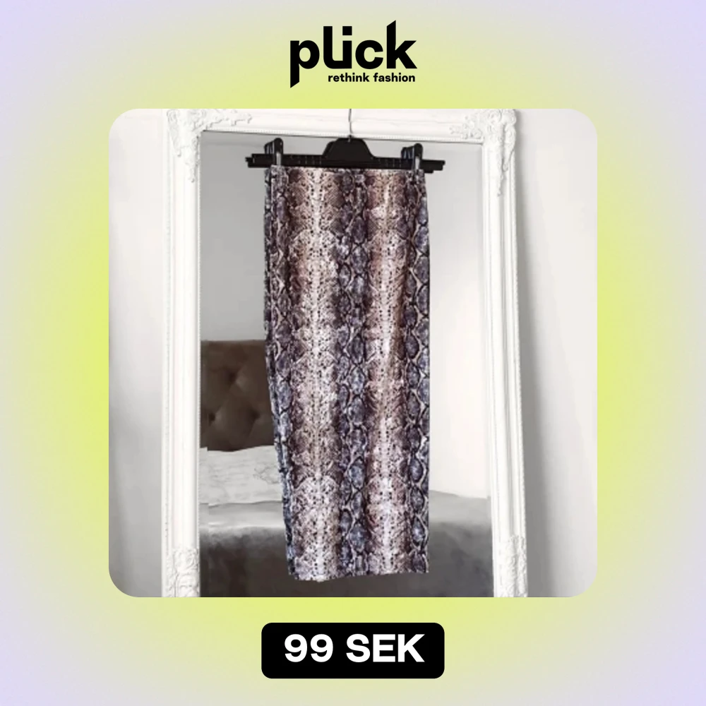Färg: beige-mönstrad. Strl: XS. Snygg kjol med ormmönster från gina Tricot. Helt NY, aldrig använd. Bred resor i midjan i elastiskt material. Fin lyster. Kommer ej till användning och stor garderobsrensning pågår!