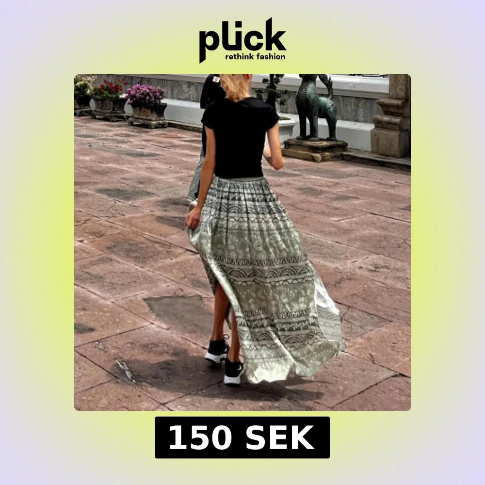 Flowig långkjol i grönt och vitt med unikt grafiskt mönster och elastisk midja med knyt. Kjolen har en slits på sidan som ger extra rörelse och en chill vibe. Perfekt för dig som gillar boho-stil och vill sticka ut med snygga detaljer.