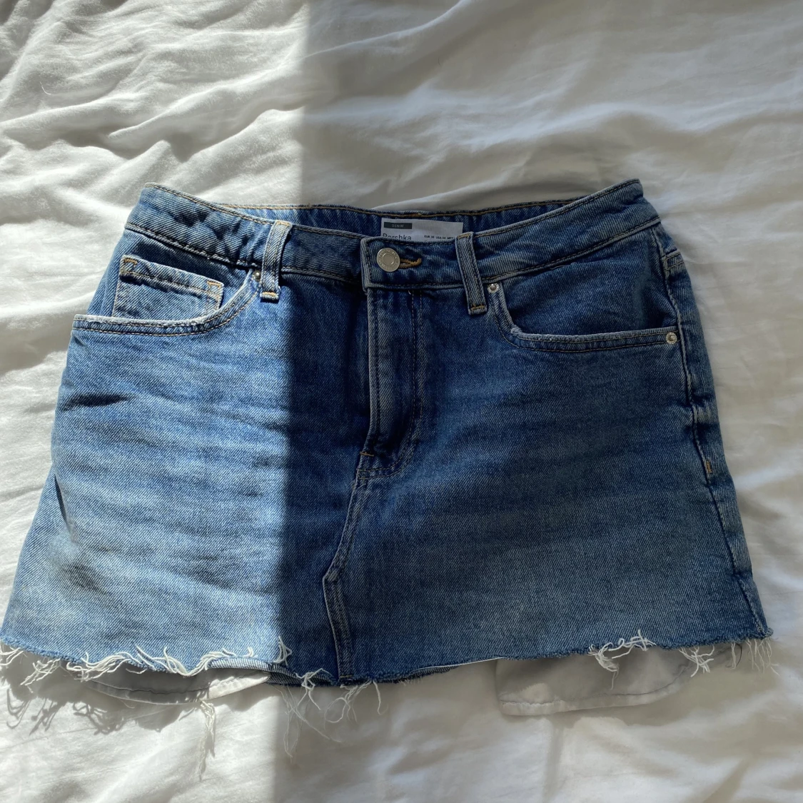 Kort jeanskjol. Liten i storleken!