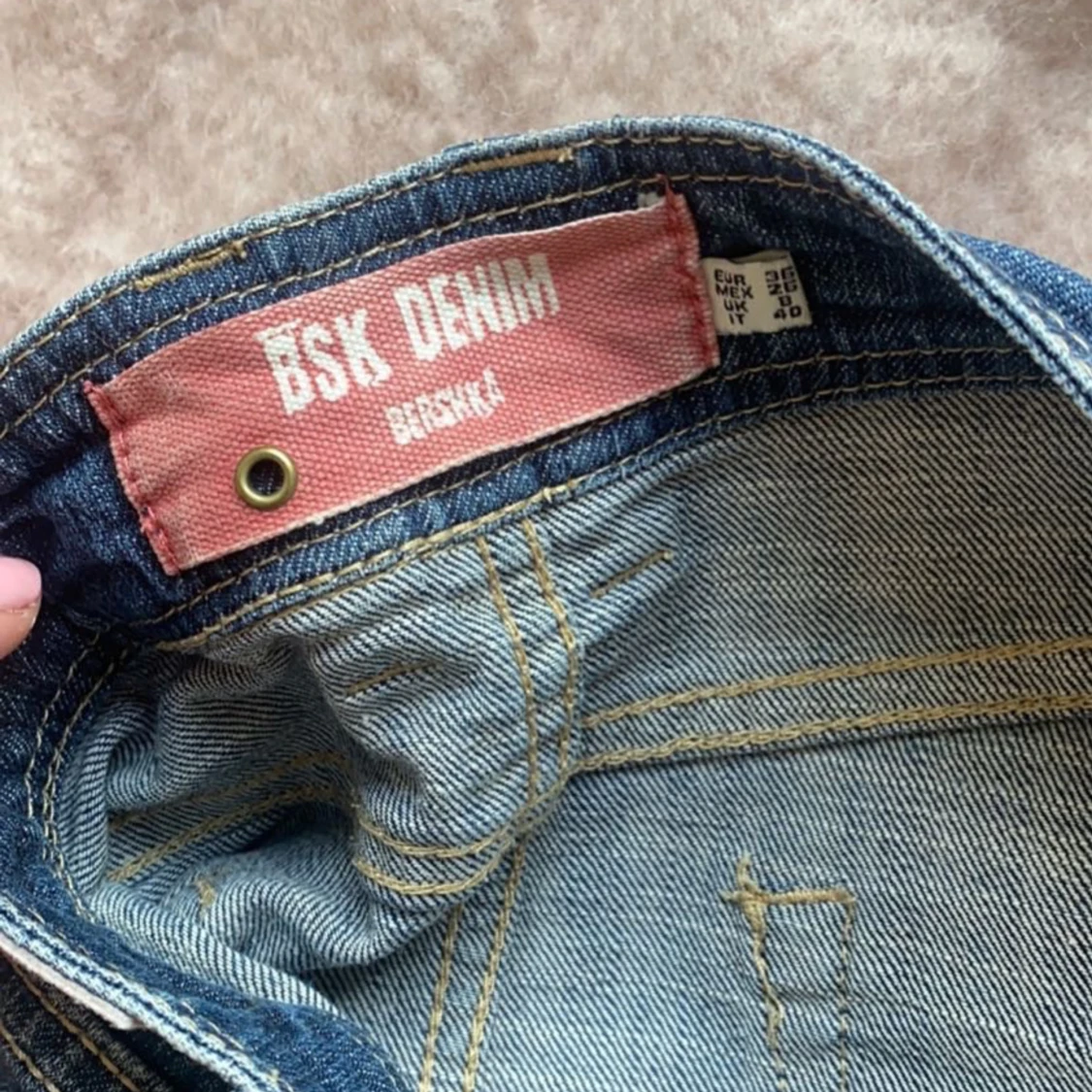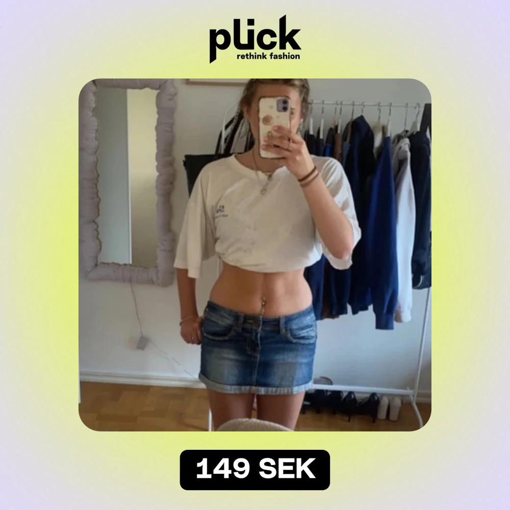 jättesöt lågmidjad jeanskjol från bershka, köpt secondhand. Säljer då jag har för många. I bra skick💗 det står strlk 36 men skulle säga att den är mer 34