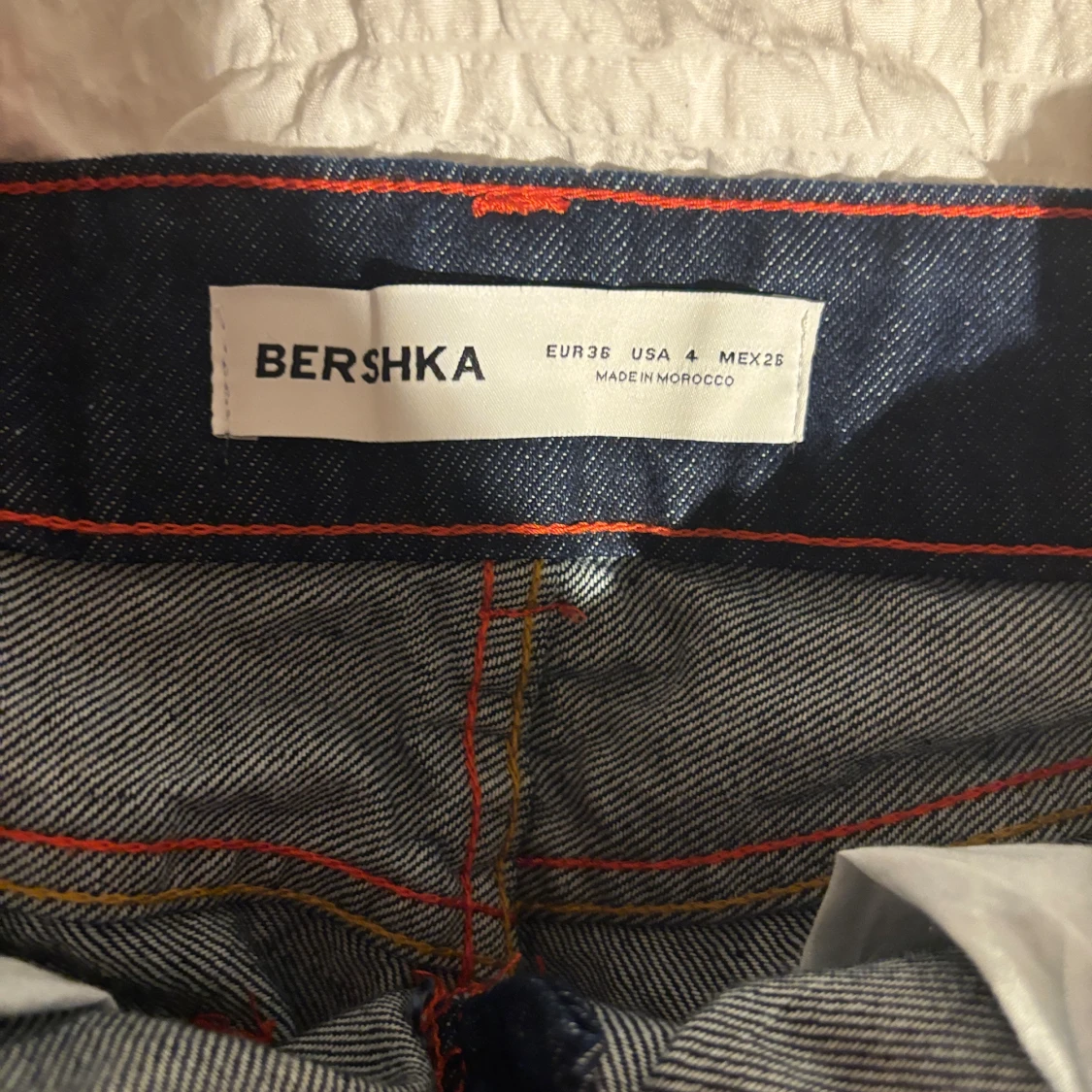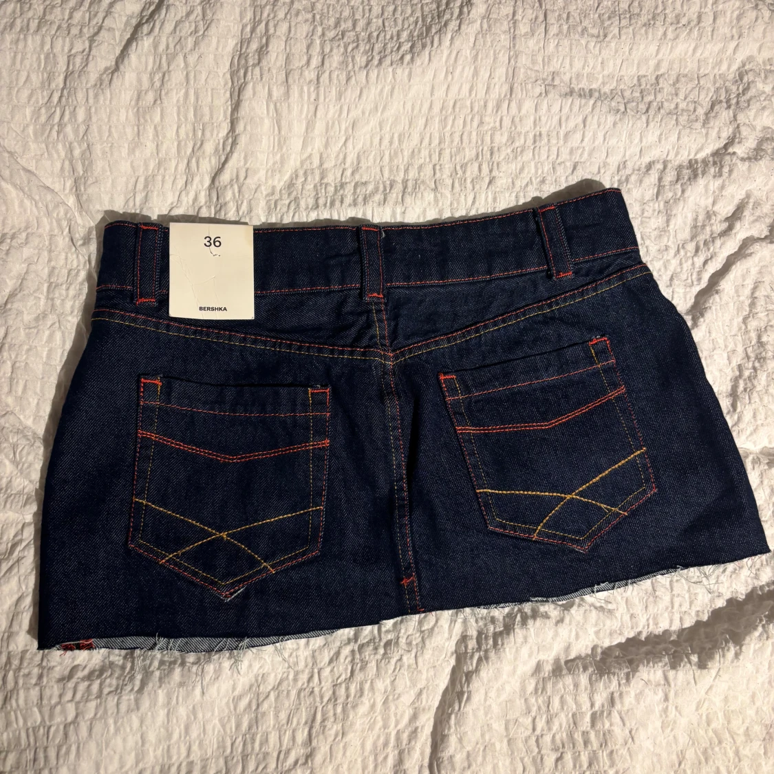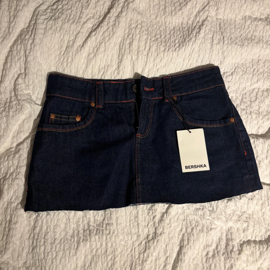 Snygg mörkblå mini jeanskjol från Bershka, säljer pga den är i fel storlek för mig.