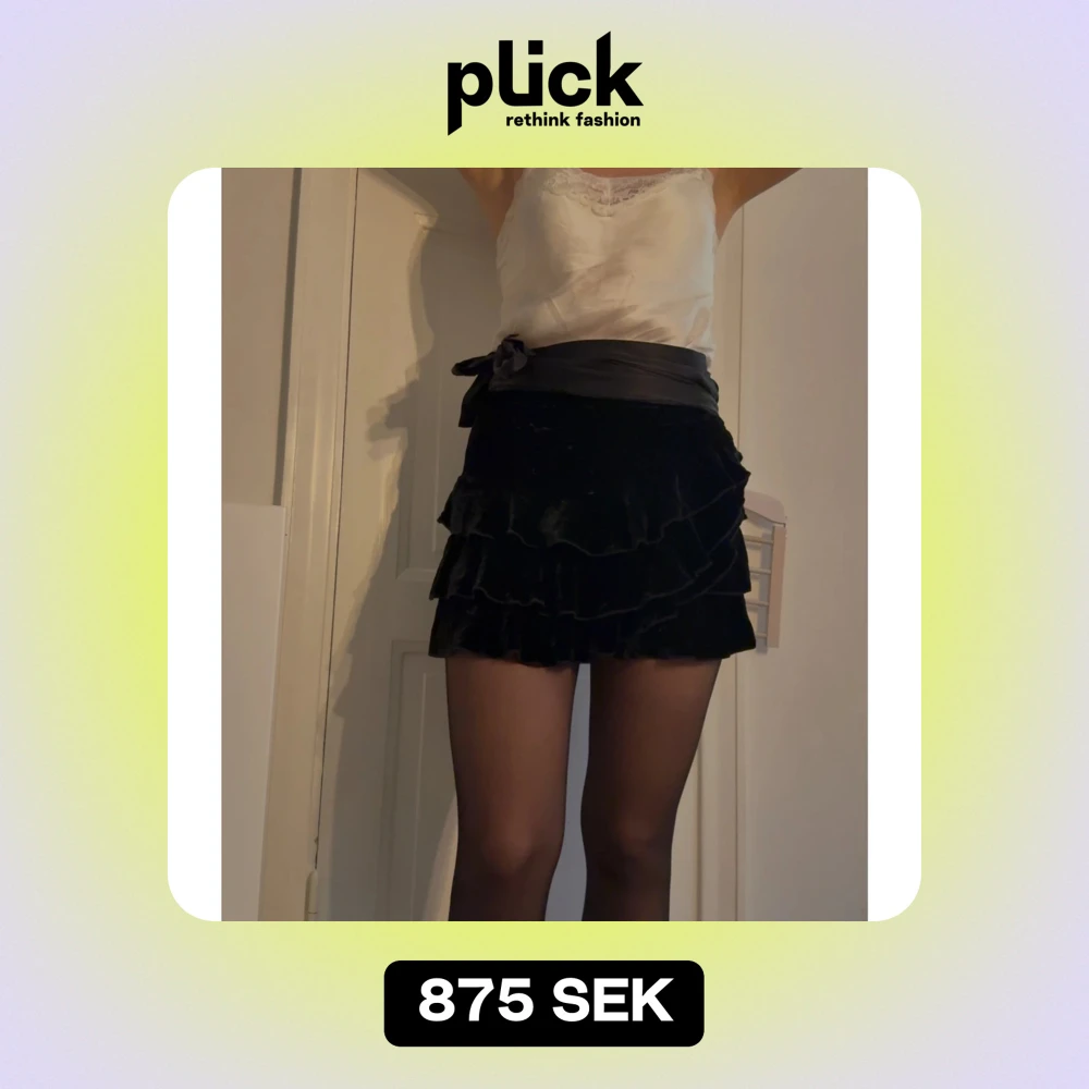 Säljer en superfin svart volangkjol från Juicy Couture i storlek M. Kjolen har flera lager volanger och ett brett midjeband med en söt rosett. Perfekt för festliga tillfällen! Materialet är en blandning av nylon och silke vilket ger en lyxig känsla. 🖤 nypris var/är omkring 1850kr.