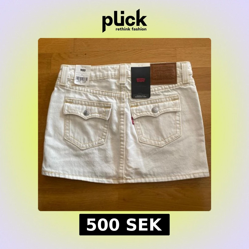 Vit jeanskjol från Levi's i klassisk minilängd. Kjolen har snygga bakfickor med lock och knappar. Den är helt perfekt nu till sommaren😊Kjolen är aldrig använd, helt ny med lappar kvar! Kjolen finns inte längre att köpa heller. Skriv gärna ifall du har frågor!💗