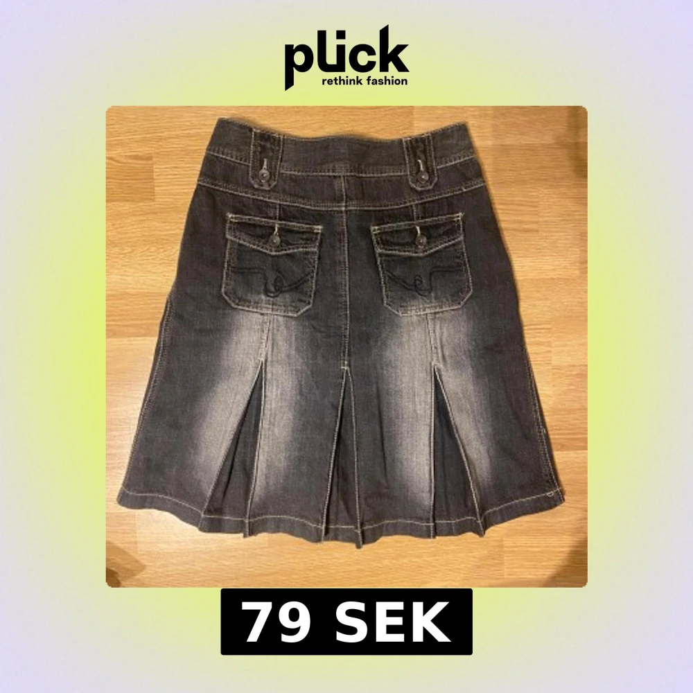 Cool svart jeanskjol med markerade sömmar, stora fickor fram och bak samt snygga slitsar nertill. Kjolen har en lätt utsvängd form och midjehög passning. Perfekt till boots och en croppad topp för en trendig look.