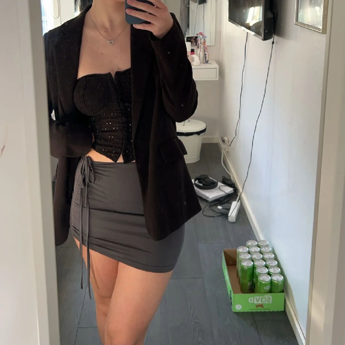 Kjol från Edikted i modellen ”Frankie drawstring mini skirt”. Aldrig använd, säljer då den är lite liten och aldrig kommit till användning. Strl S, köpt för ca 350kr + 190 kr frakt💕