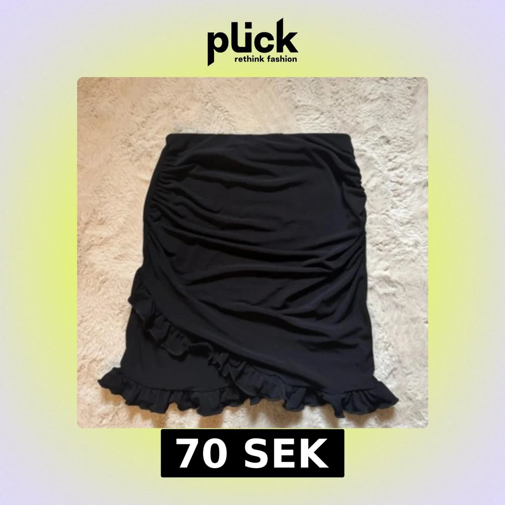 Supersnygg svart kortkjol från NA-KD med volangdetaljer längs nederkanten och lätt rynkade partier på sidorna. Kjolen har en figurnära passform! Kolla gärna mina andra annonser!🩷