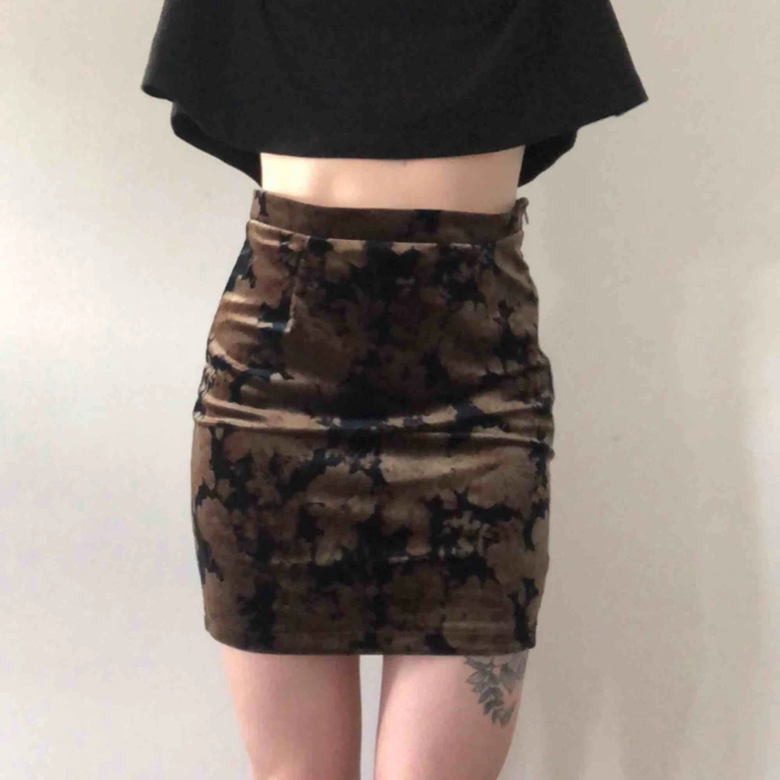 Sammetskjol i mörkt marinblått och brunt/guld. Märkt S men lite för stor för mig. Längd: 45 cm Betalning sker med Swish. Köparen står för frakt. Kan annars hämtas upp i Hökarängen ✨