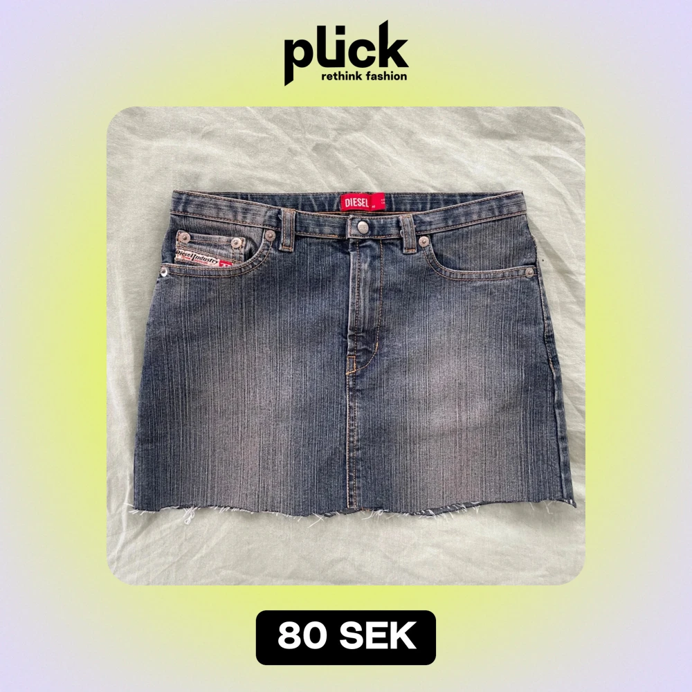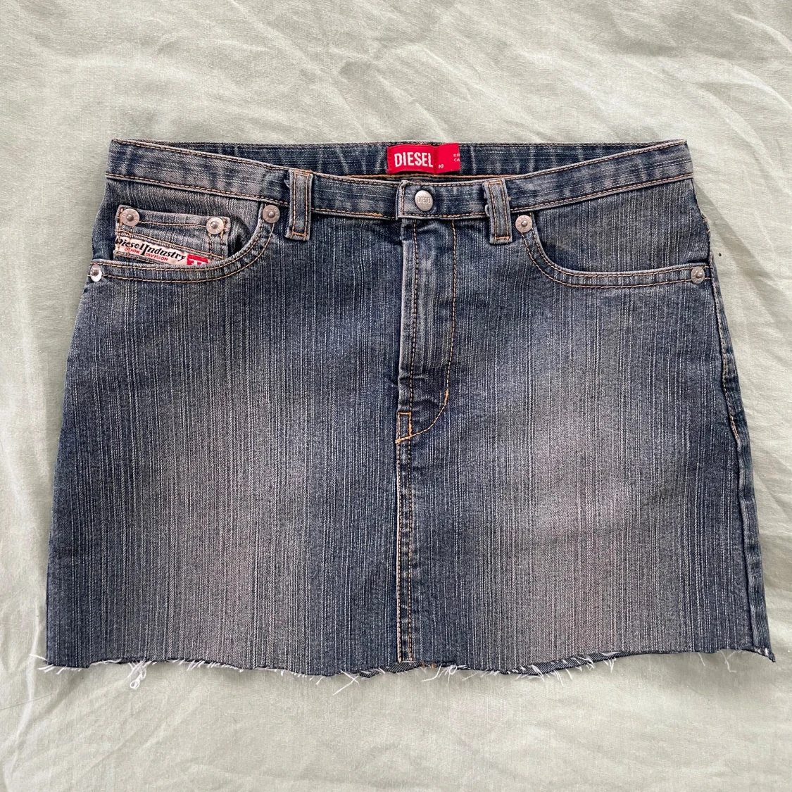 Snygg jeanskjol från Diesel i klassisk blå denim. Kjolen har en rå kant nertill för en cool, avslappnad look. Den har fem fickor och knappar med Diesel-logga. Perfekt för både vardag och festliga tillfällen!