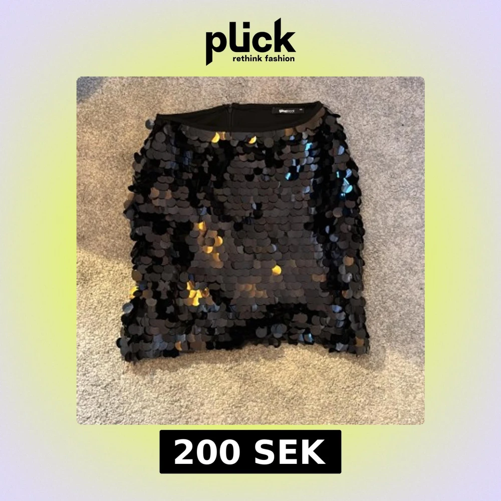 Snygg svart kortkjol från Gina Tricot täckt med glittrande paljetter. Perfekt för en kväll ute eller en festlig tillställning. Kjolen har en dragkedja baktill för enkel på- och avtagning. Gör ett statement med denna glittriga kjol! Använd en gång💕💕