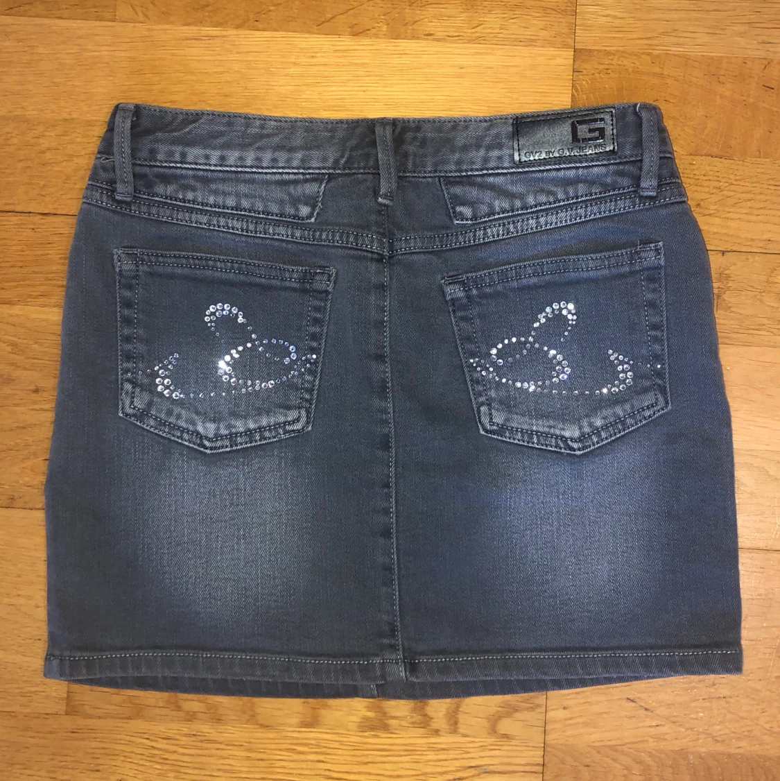 En skitsnygg lågmidjad jeanskjol från GV2 BY G.V JEANS🖤 Färgen är grå och den har flera detaljer som diamanter på knapparna och glitter på fickorna! Storlek S. Kjolen är köpt från Beyond Retro för 350kr. MITT PRIS: 200kr🤍🖤