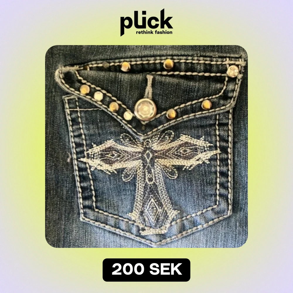 Säljer denna jättefina jeanskjol med supercoola fickor. Var förut ett par jeans jag klippt. Low waist men går att ha som man vill. Omkretsen i midjan är 90 cm på kjolen, men går lätt att sy in eller ha skärp till om de är för stort. Diskuterar priset