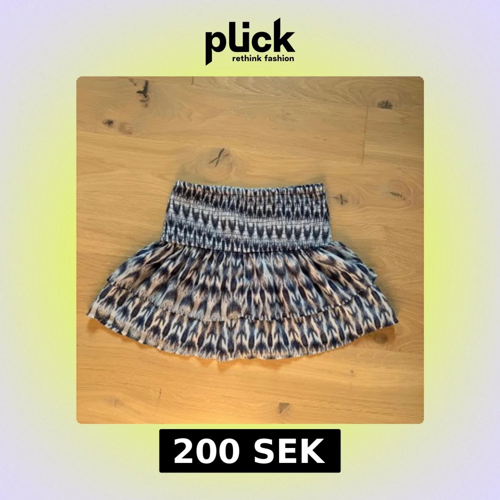 Supersöt kortkjol från Gina Tricot med blått och vitt mönster. Kjolen har bred smock i midjan och volangig nederdel som ger en flowy känsla. Perfekt för dig som gillar en chill och trendig stil.