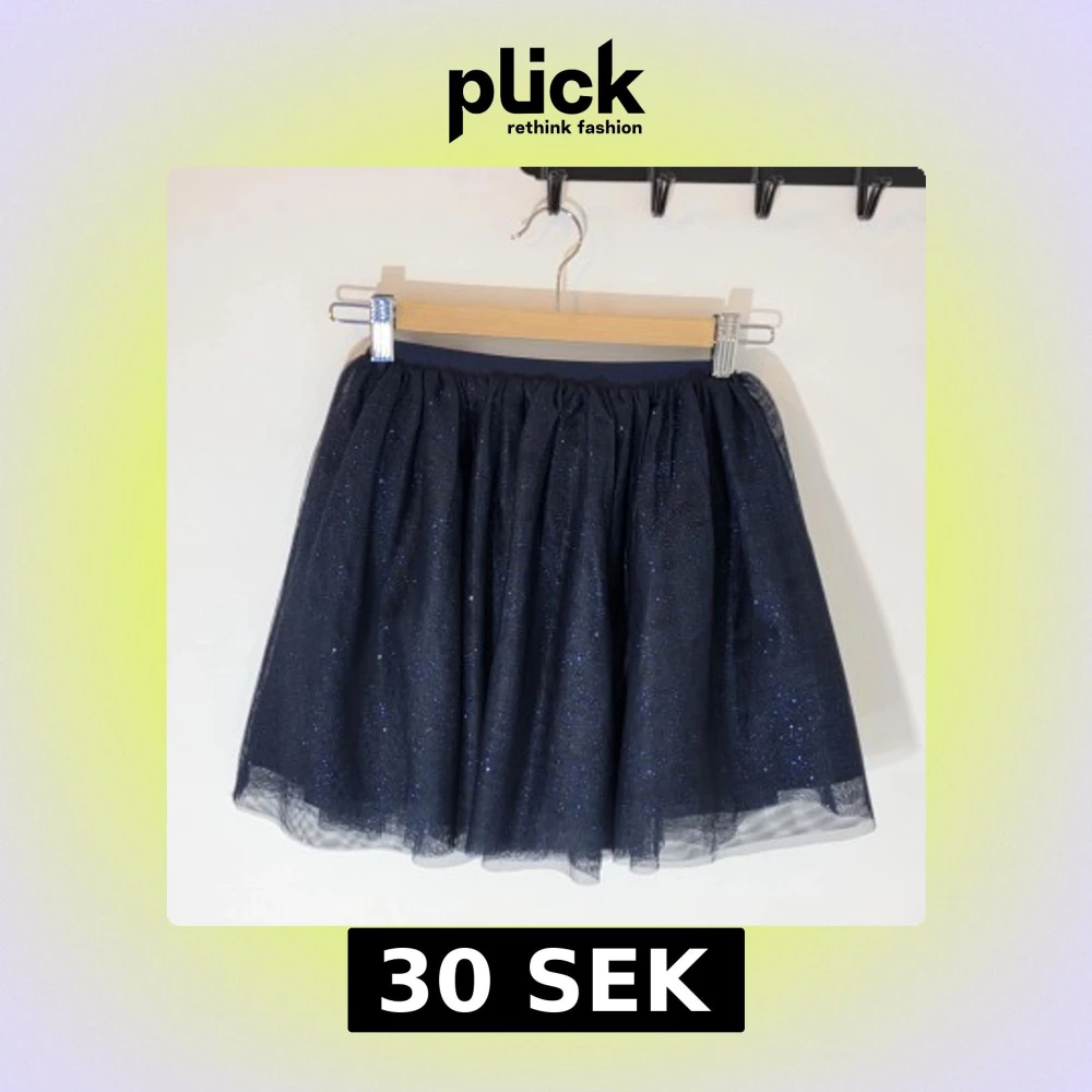Säljer en mörkblå kortkjol från H&M med glittrande tyll och resår i midjan. Kjolen har flera lager som ger en fluffig och voluminös look. Perfekt för dig som gillar att sticka ut med lite extra glitter i outfiten.