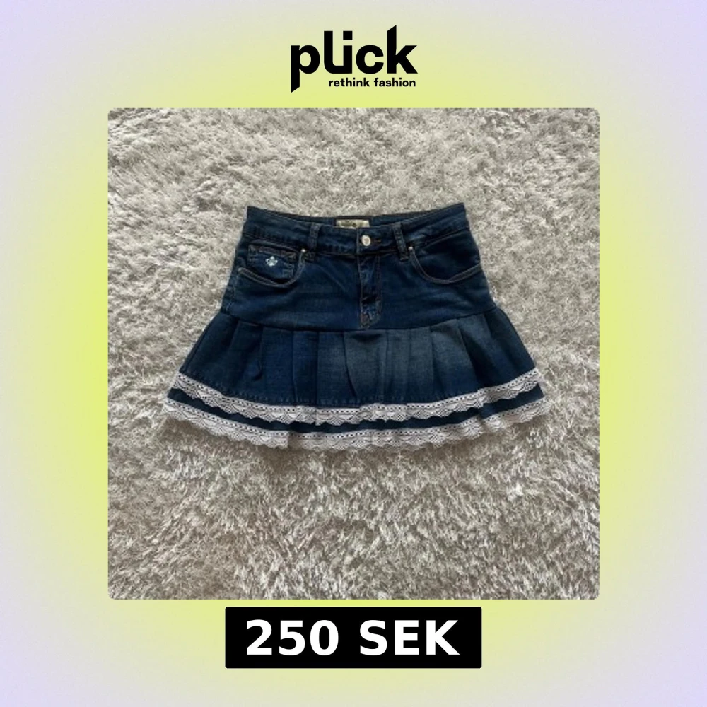 Lågmidjad jeanskjol omsydd från ett par jeans. Midjemått tvärsöver- 34cm Längd-34cm