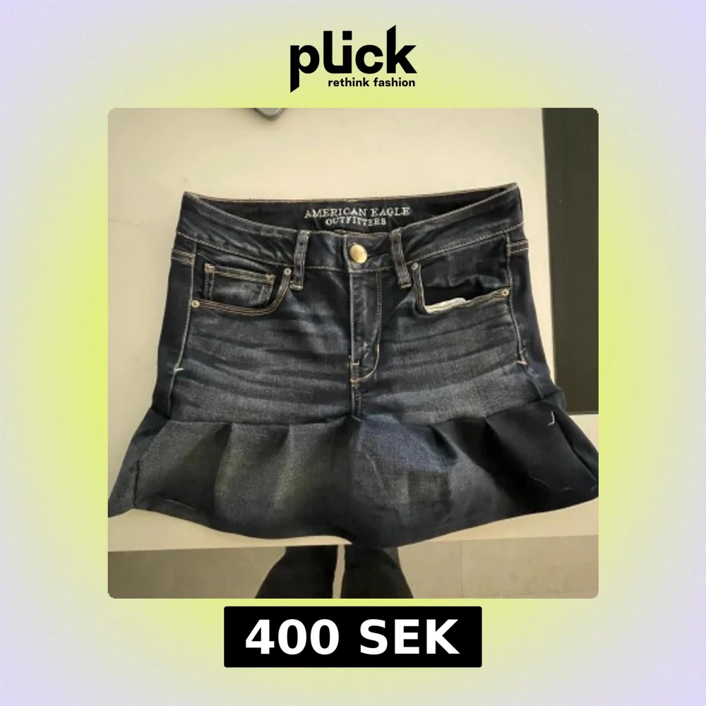Säljer en mörkblå jeanskjol från American Eagle Outfitters med volang nertill. Perfekt till sommarn🥰