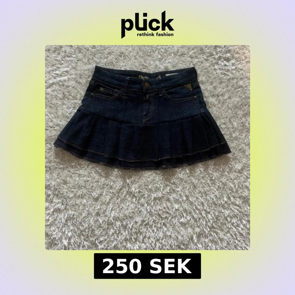 En jeanskjol omsydd från ett par jeans. Midjemått tvärsöver - 33cm stretchig Längd - 32cm