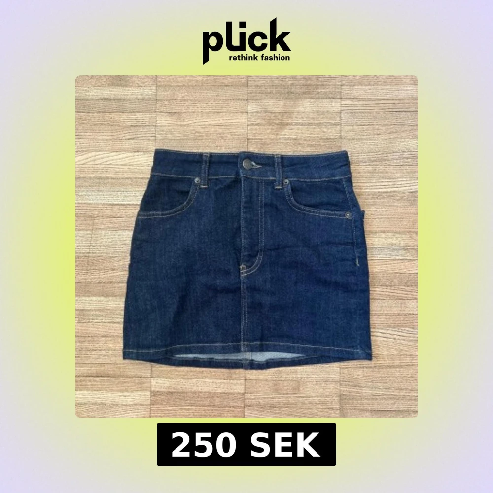 Säljer en klassisk mörkblå jeanskjol med femficksmodell och synliga kontrastsömmar. Kjolen har knapp och dragkedja framtill samt bälteshällor i midjan. Perfekt till vardags för en avslappnad stil.