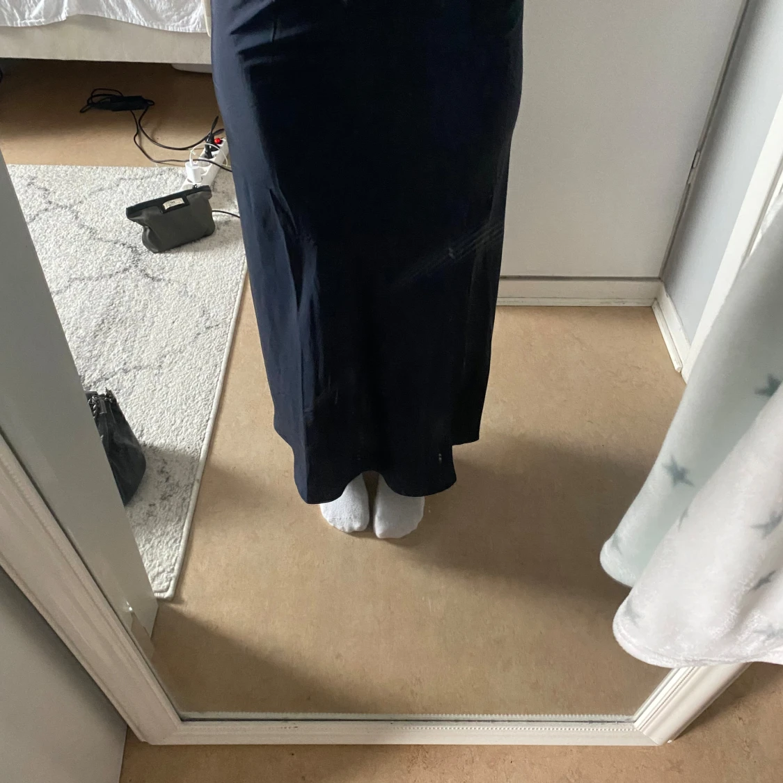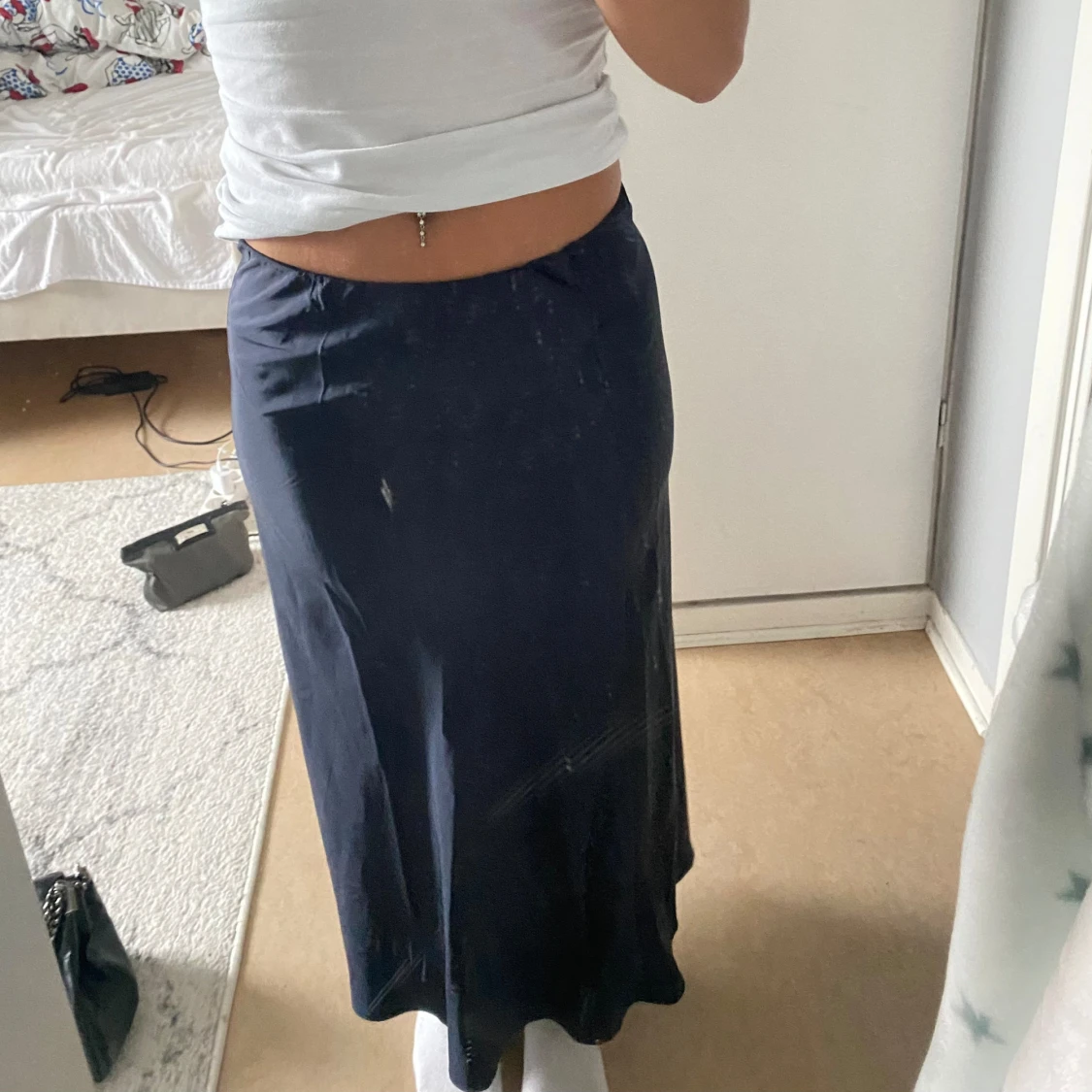 Säljer en snygg mörkblå långkjol från Gina Tricot i storlek XS. Kjolen är i ett mjukt och bekvämt material, perfekt för både vardag och fest. Den har en enkel och stilren design som gör den lätt att matcha med olika toppar. Passar perfekt för höst och vår! Aldrig använd och är i silke!