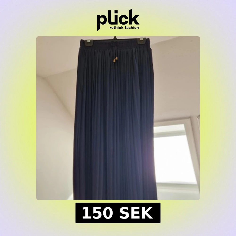 Elegant mörkblå långkjol med plisserad design och elastisk midja. Perfekt för en stilren look. Kjolen har en diskret knytning i midjan för extra detalj.
