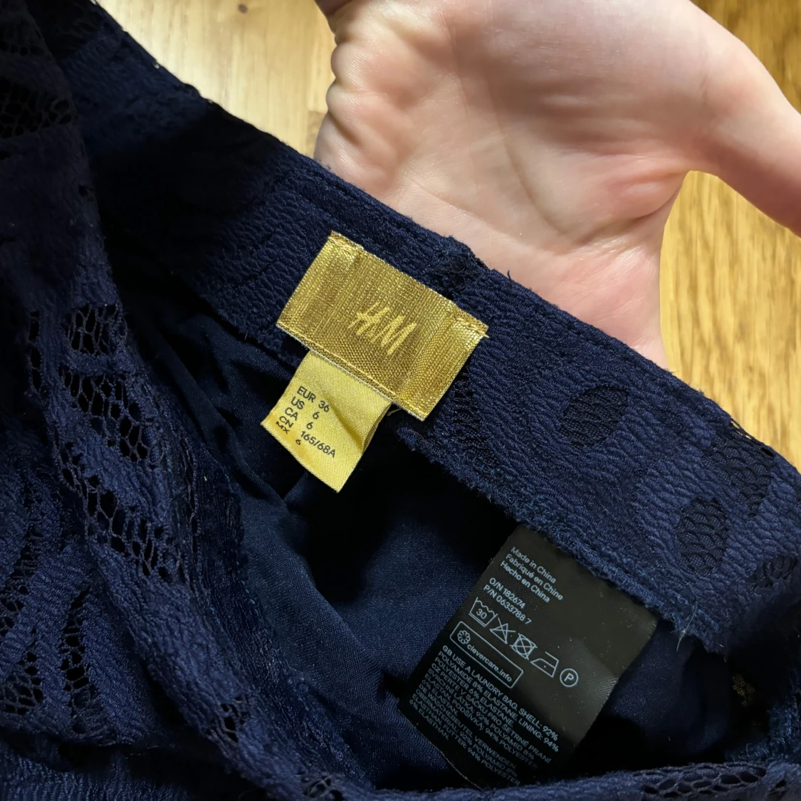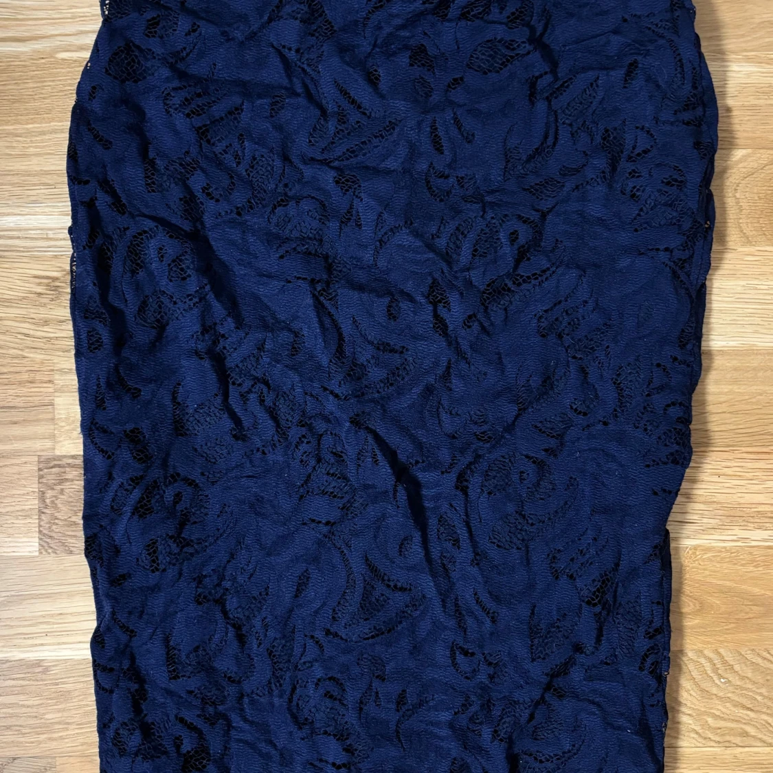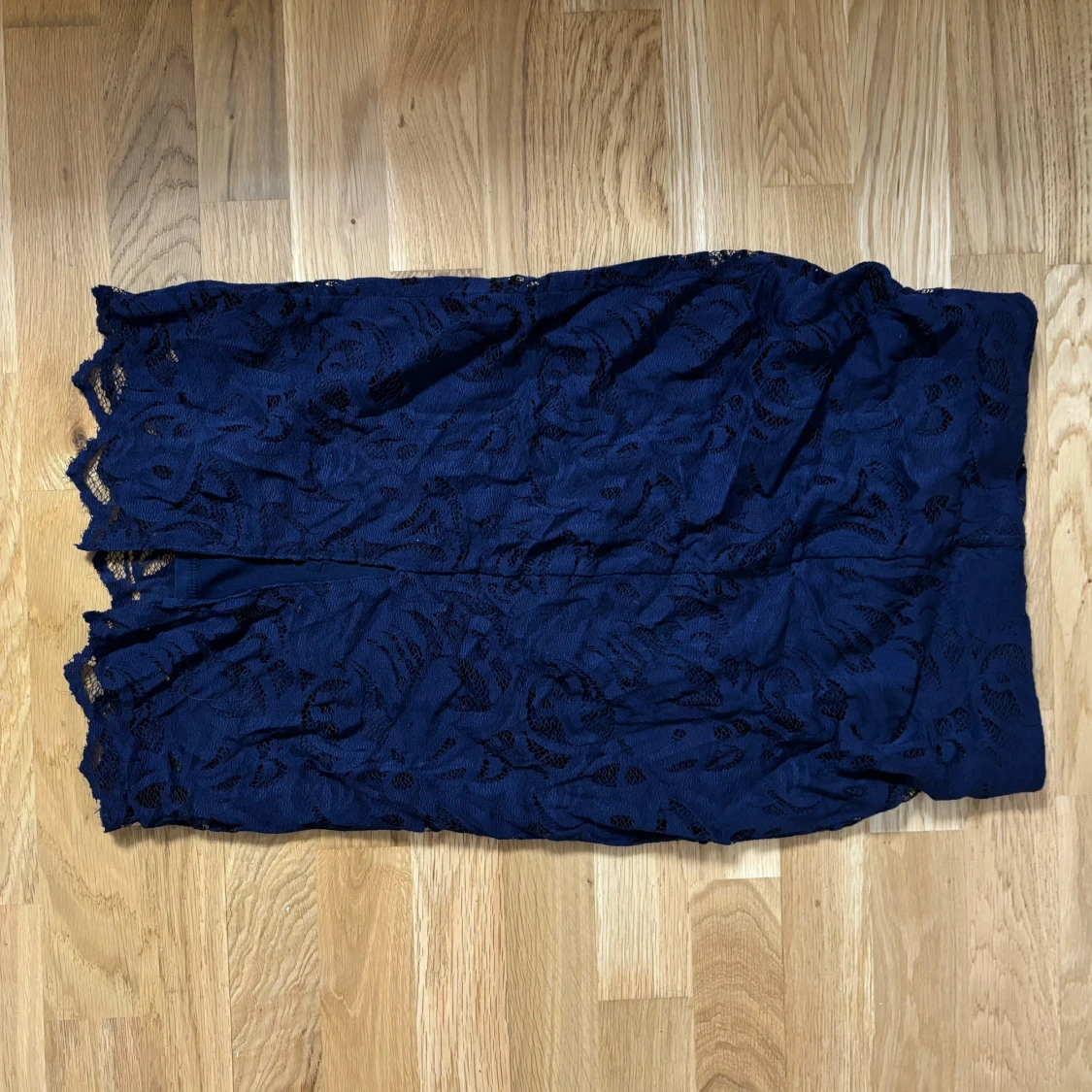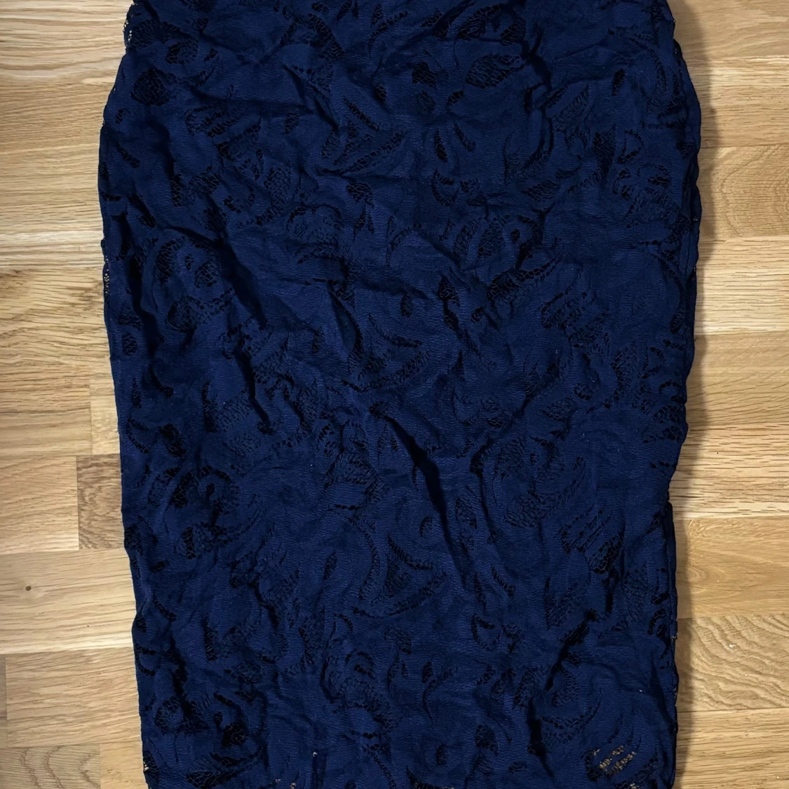 Elegant mörkblå kjol i spets från H&M. Kjolen har ett vackert mönster och är perfekt för en stilfull look. Den är knälång och har en smickrande passform.