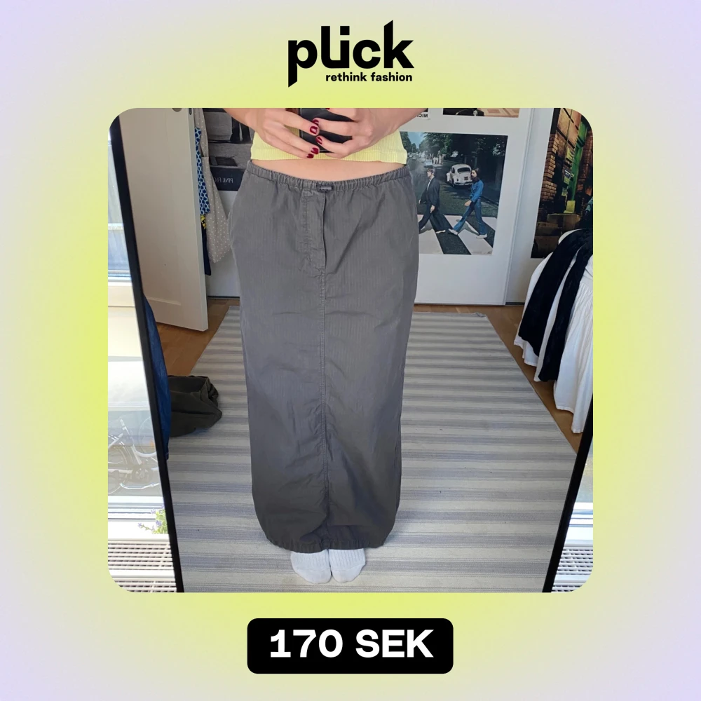 Mörkgrå cargokjol från Zara i mycket bra skick. Kjolen har en slits baktill och elastisk midja som man kan justera. Finns ficka på vardera sida. Jag är 167 cm lång.