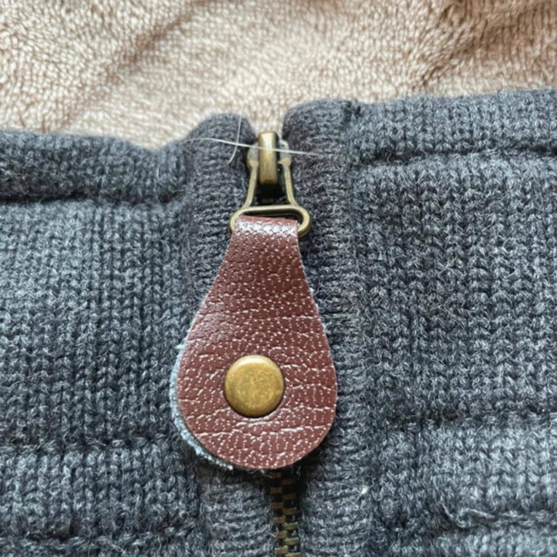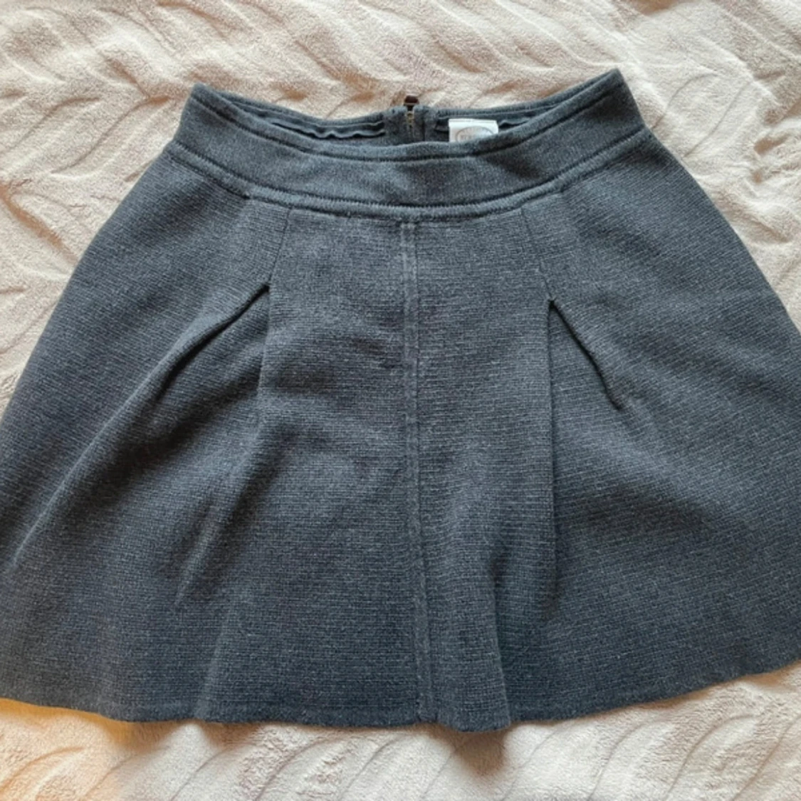 Mörkgrå stickad kortkjol från Newhouse med snygg A-linjeform och markerad midja. Kjolen har dragkedja bak med en brun läderdetalj och dekorativ knapp. Perfekt för dig som gillar klassisk och enkel stil. 100% bomull