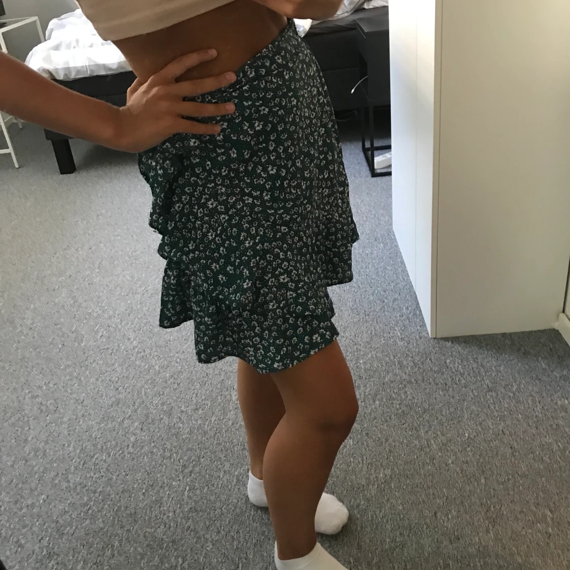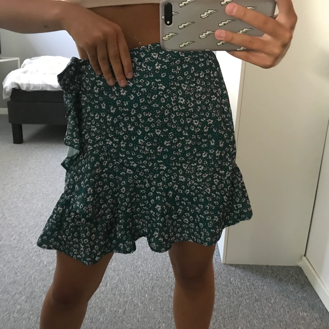 Jättegullig och fin kjol, aldrig använd då jag köpte nya kjolar och ”glömde bort denna. Du knyter åt den sjölv så passar alla, köpte i M då många skrev att den va kort, denna sitter perfekt i längd