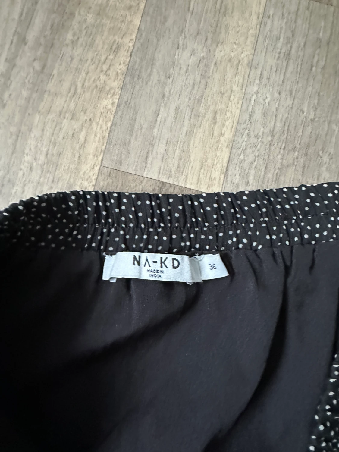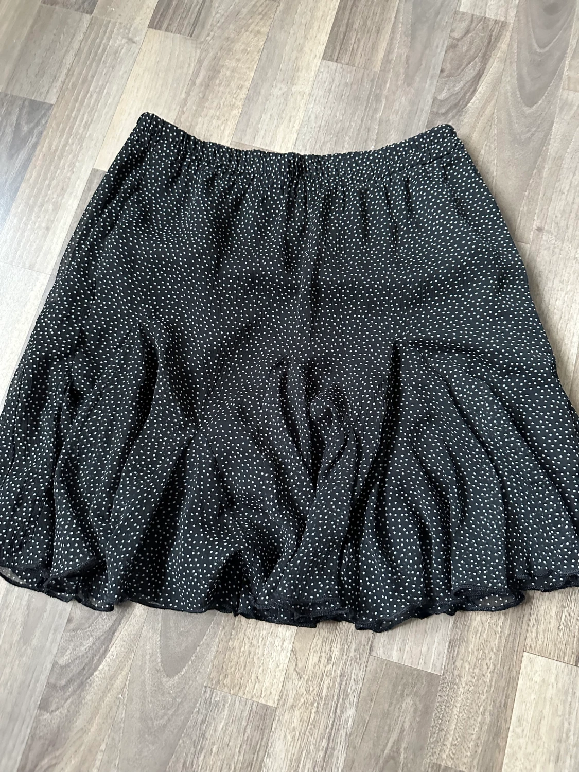 super fin svart kjol med vita prickar på, har även innetyg så inte seethrough
