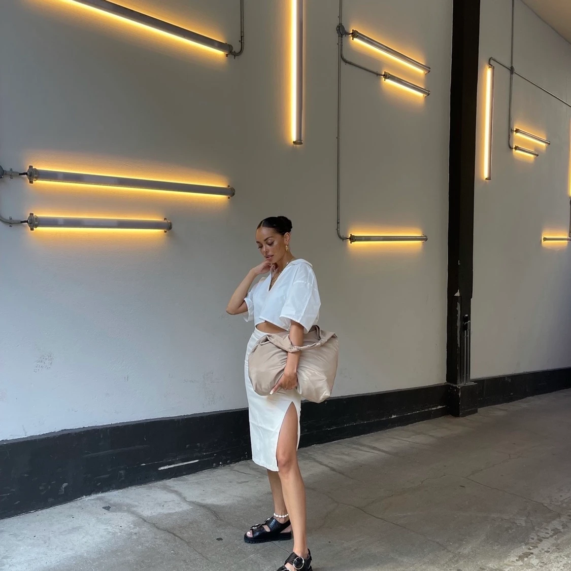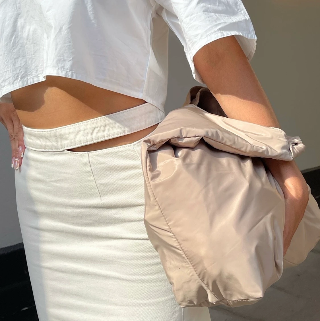 Beige denimkjol med slits