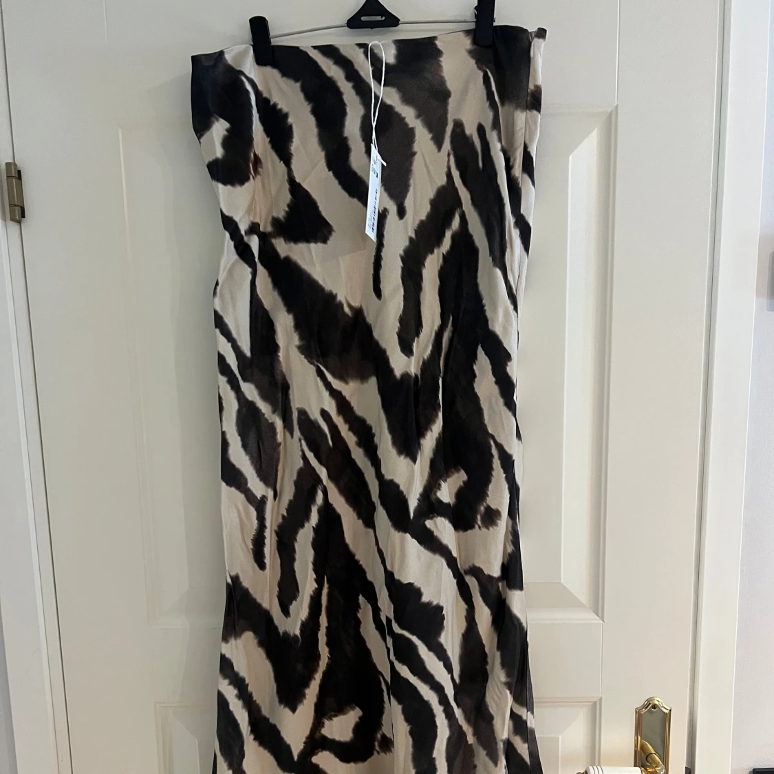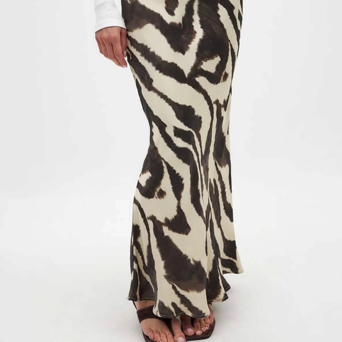Lapp kvar!! Supersnygg långkjol med zebramönster i svart och beige. Kjolen har en lätt utsvängd passform och är gjord i ett glansigt satinliknande material som ger en lyxig känsla. Perfekt för dig som vill sticka ut med ett djurmönster.
