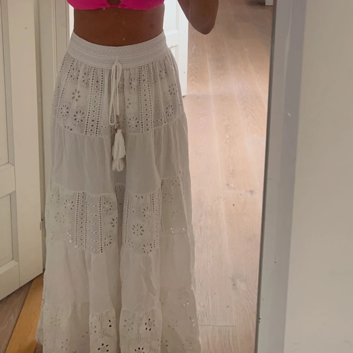 Vit långKjol köpt i en butik i Grekland i somras för 59 euro - 700kr. Massa små fina detaljer. Säljer endast vid bra bud!