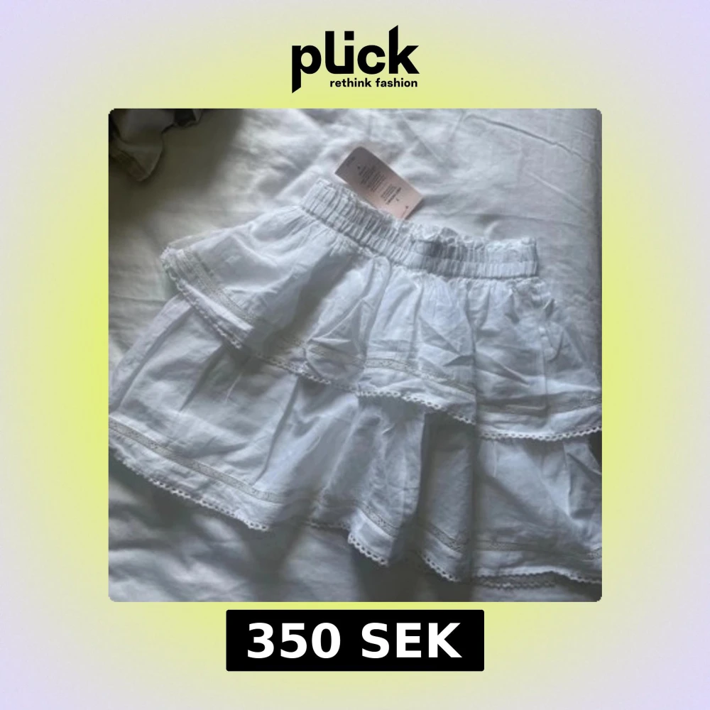 Supersöt vit kortkjol från Nelly med volanger och fina spetsdetaljer. Kjolen har resår i midjan och är gjord i bomull, vilket gör den både luftig och bekväm. Perfekt för sommarens alla tillfällen när du vill känna dig extra söt. Aldrig använd.