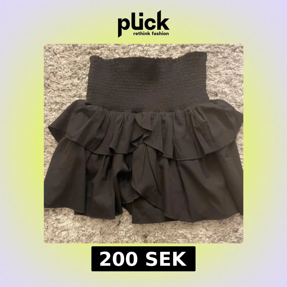 Trendig svart kjol med volangdetaljer och en elastisk midja för bekväm passform. Sparsamt använd och inga defekter eller liknande.