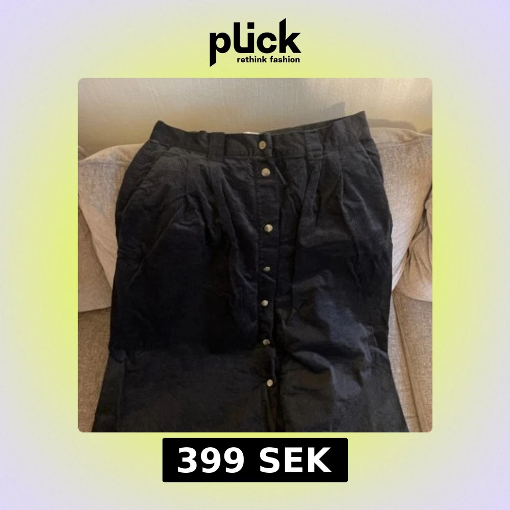 Snygg svart manchesterkjol från Noa Noa med knappar framtill. Kjolen har en klassisk design med en bekväm passform och är perfekt för kyligare dagar. Två fickor fram och en bak.