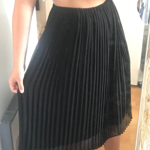 Svart plisserad kjol:) jag är 158 och den är lite lång till mig för min smak. Lappen är borta men jag vet att den är från Noa noa och kostade runt 1000kr när den köptes💕 jag har oftast M i byxor så skulle säga att den passar en M