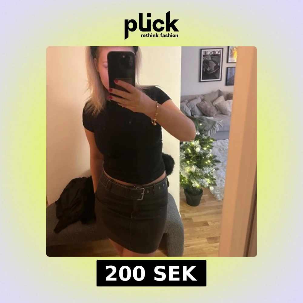 Jättesnygg skinnkjol från olny Oanvänd med prislapp kvar Går att klä upp och klä ner, så snygg med tex en vit skjorta till Storlek M