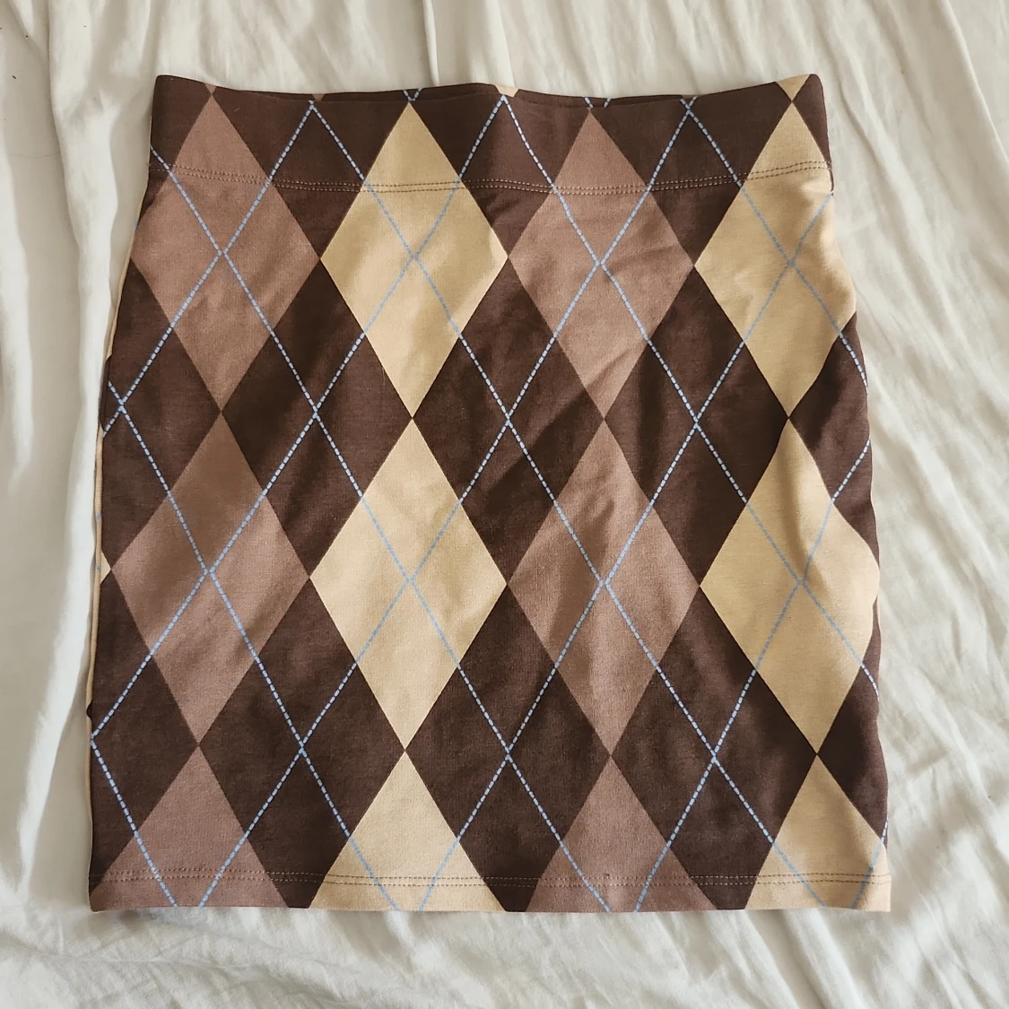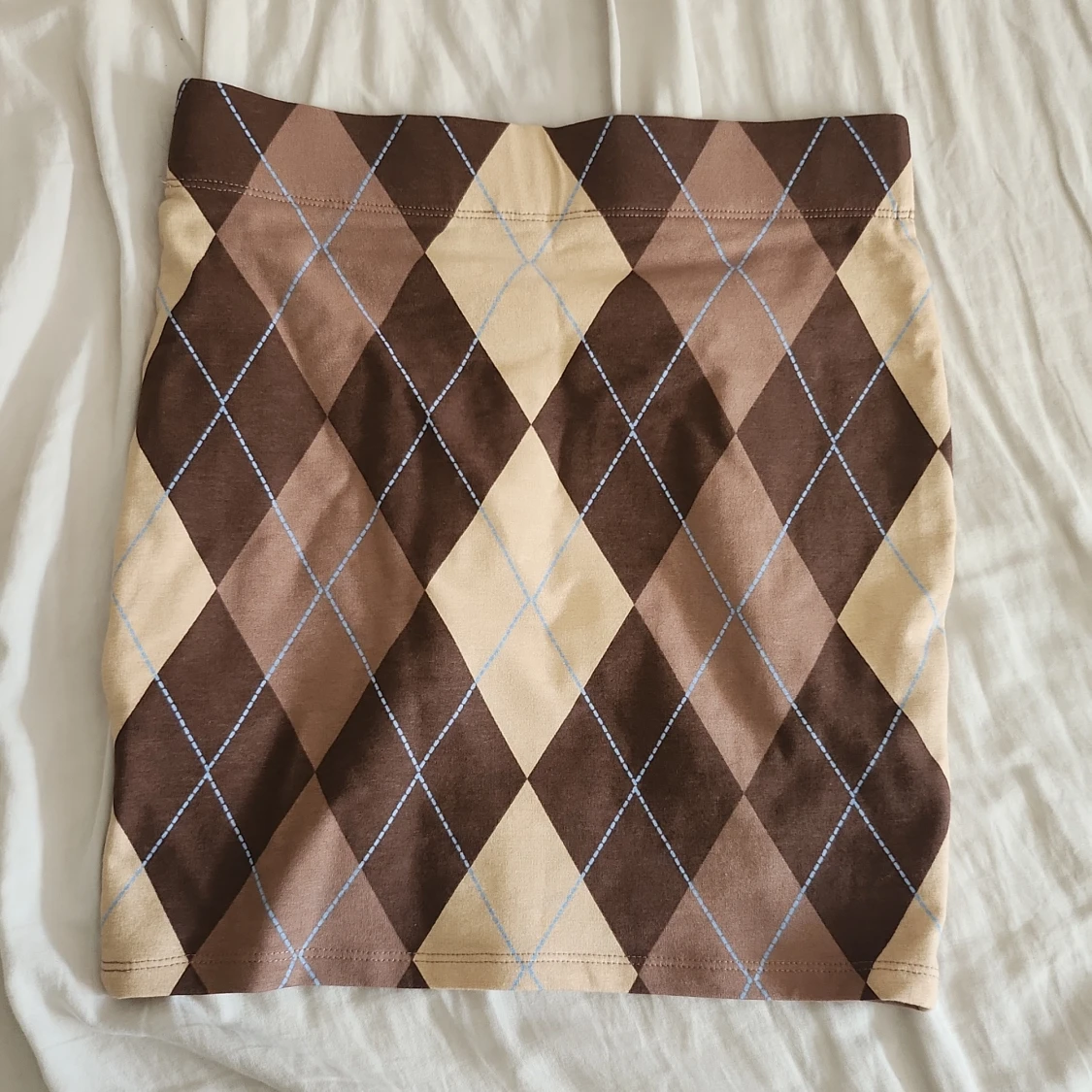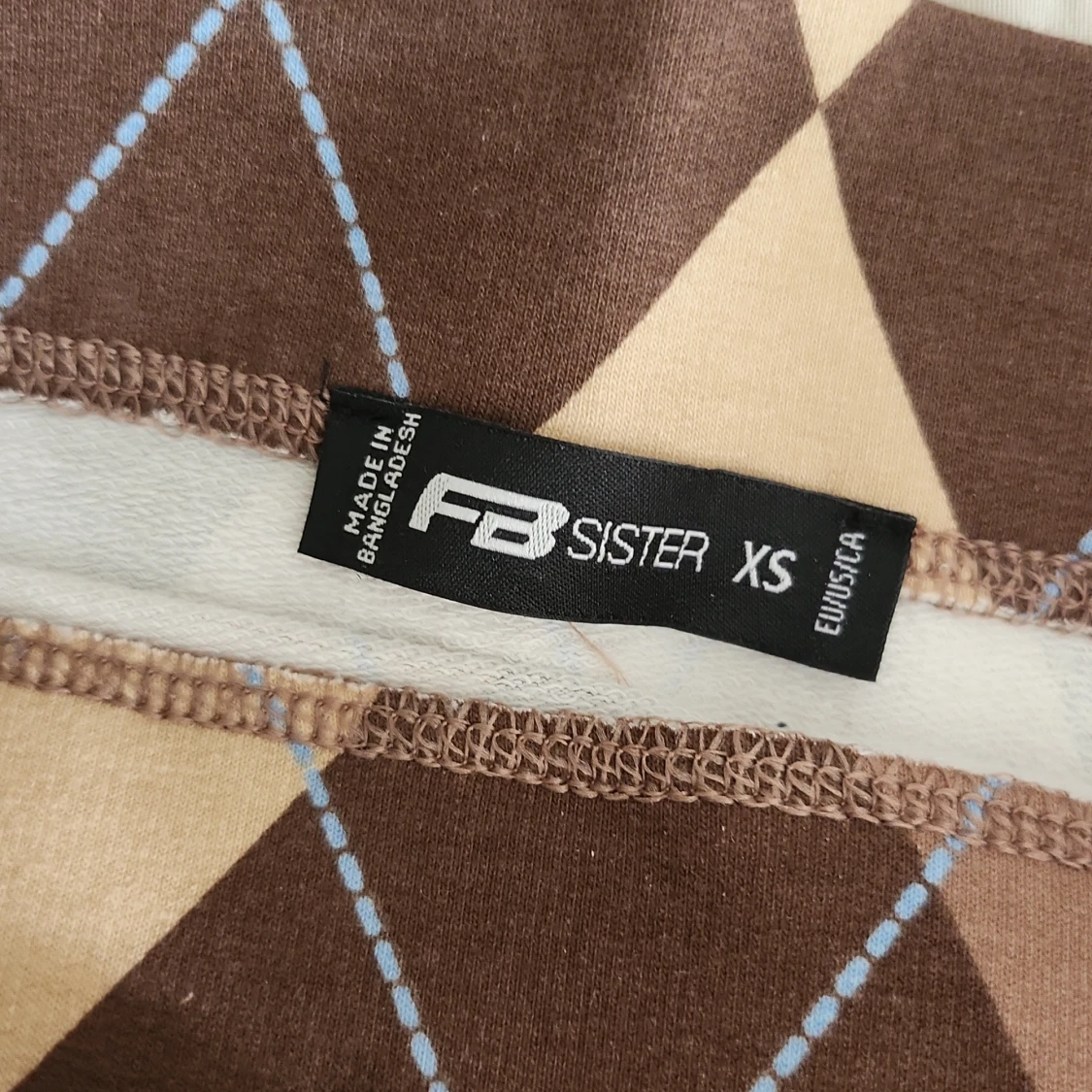 Superfin kortkjol från FB Sister i storlek XS med rutigt argylemönster i bruna och beige toner. Kjolen är figurnära och har en klassisk, preppy vibe. Perfekt att styla med en stickad tröja eller oversized t-shirt.