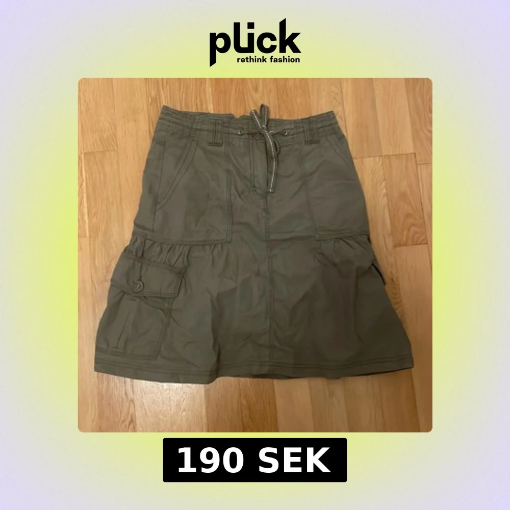 Vintage lite y2k style kjol från Kappahl i storlek 36. Väldigt bra skick. Skulle dock säga att den passar S-M. Man kan reglera i midjan med hjälp av snöret. Snygga detaljer med knappar på fickorna och markerade sömmar. Passar perfekt till sneakers eller boots, speciellt nu till hösten!