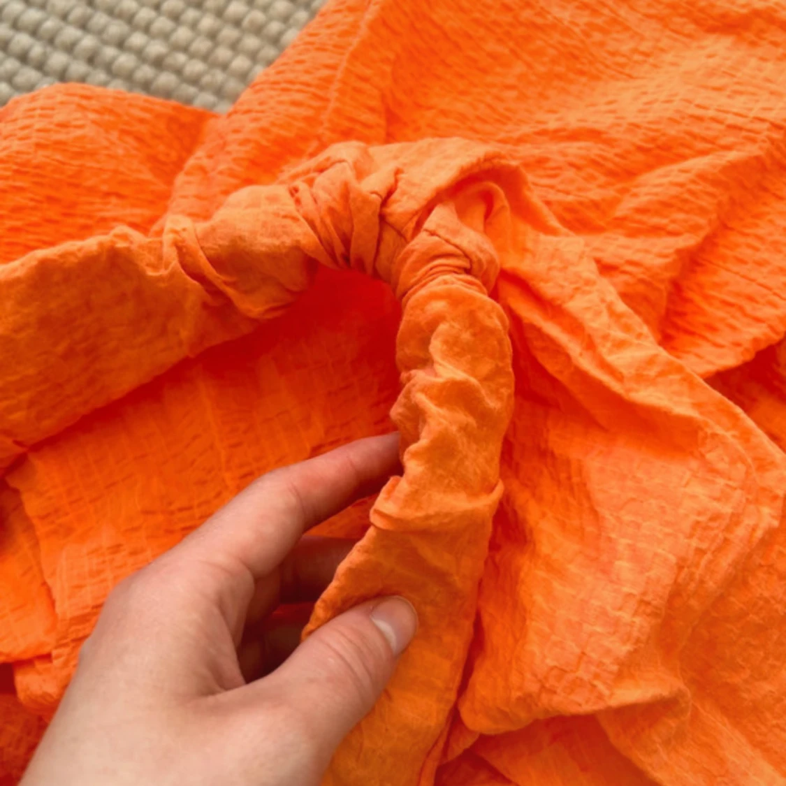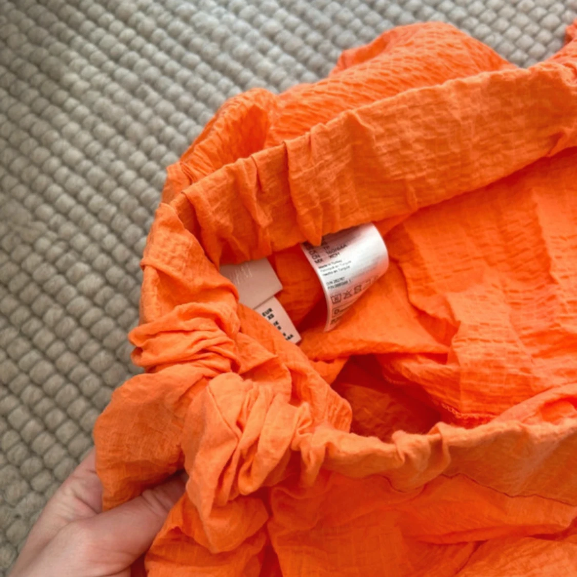 Superfin orange kjol från H&M😍 Köpt för några år sedan, men fortfarande i fint skick. Den har vikt in sig i midjan som ni kan se på bilderna, men det är ingenting som stör mycket.