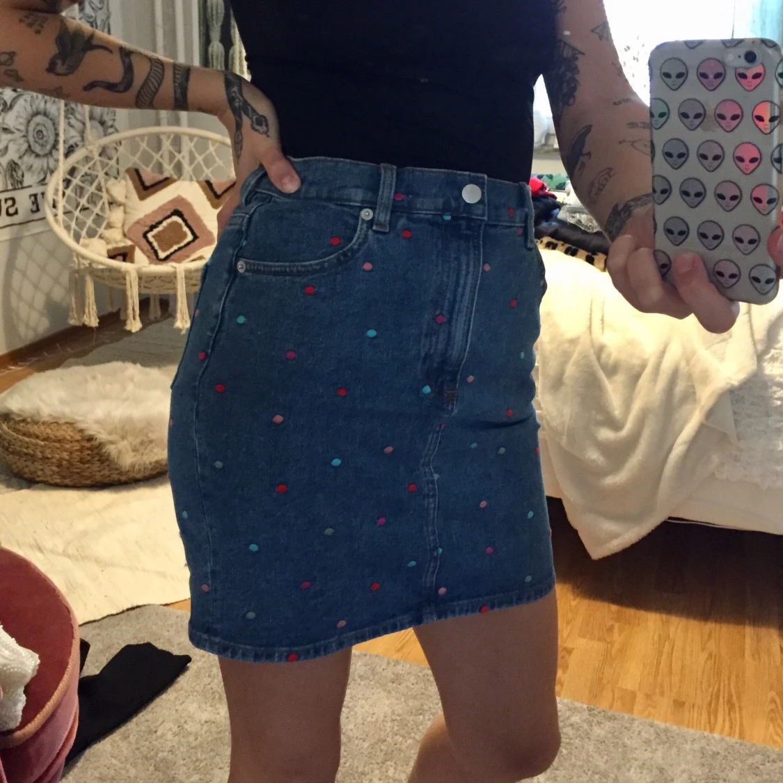 Helt oanvänd men härligt prickig jeanskjol från & Other Stories. Strl 36.