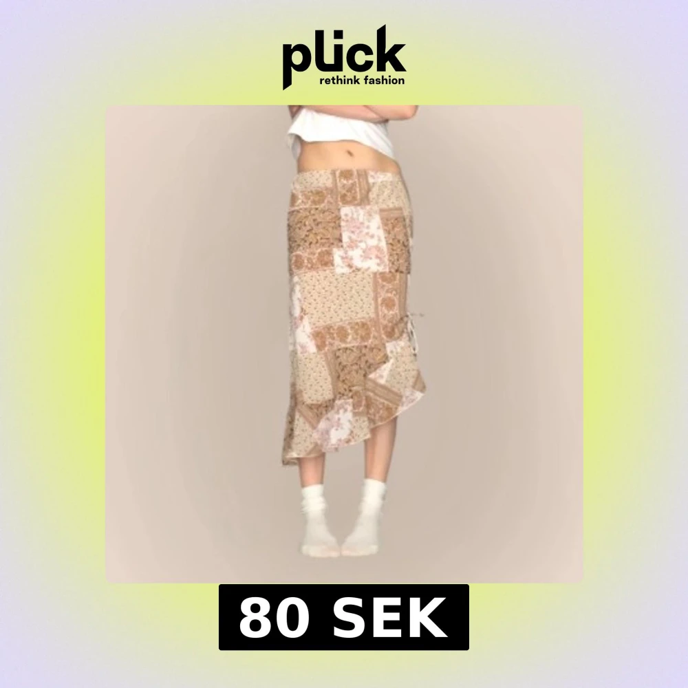 Säljer en unik patchworkmönstrad kjol i beige och rosa! Några lösa trådar vid midjan (se sista bilden). Jag på bilden har strl 38 på underdelar och är 170cm lång. Klicka på köp nu <33