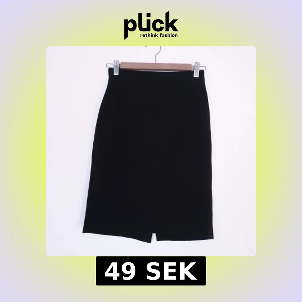 Svart pennkjol med hög midja, har bara en slit på baksidan (den är lite kortare fram), ingen stretch, dragkedja bak. Slutar precis ovanför knäna på mig som är 165cm. Mått - 62cm i midjan ca 52,5 cm lång. Kan fixa fler bilder vid intresse!